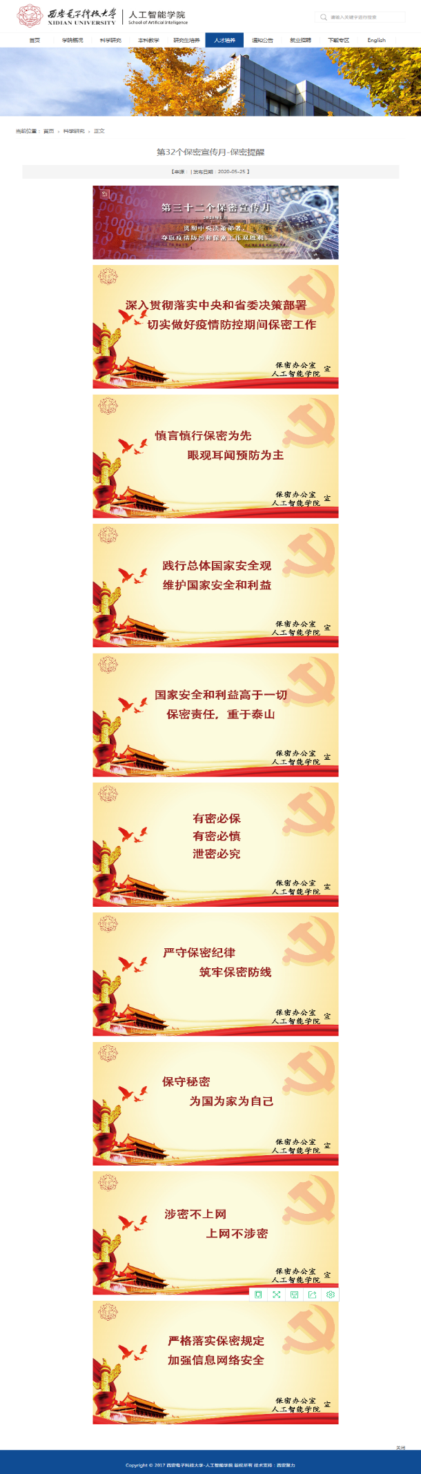 此外,开元集团官网入口还制作了宣传标语、案例警示和系列学习资料清单,以展板、邮件、微信、学院网站和走廊电子屏幕等多种形式发布保密宣传教育相关信息,全方位向全体教师和广大学生推送保密提醒。