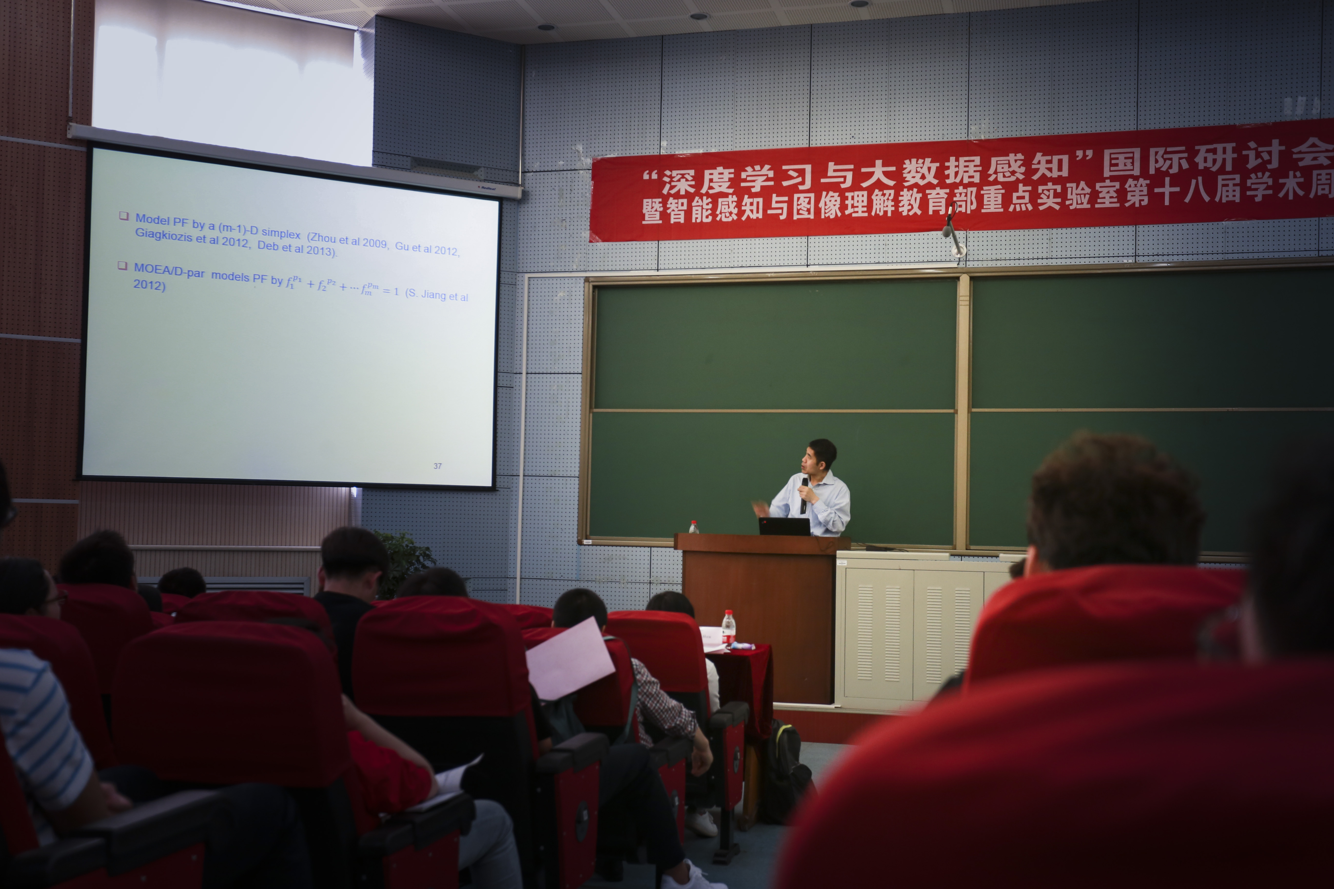 25日上午8:30分“深度学习与大数据感知”国际研讨会在开元集团网站侯彪教授的主持下正式开幕,在25日到28日4天的学术活动中共有45场精彩的学术报告呈现,由领域顶尖专家学者、新锐企业领导者及刻苦钻研的学生共同展现了多样化的学术理念与实践应用,每场报告都座无虚席,走道也站满了学生,报告厅成为了一片浩荡的求知之海洋,每一朵浪花都饱含着新知与思考。45场报告涉及了“基于脑认知机理的条件证据理论及其深度学习方法”、“Multi-objective Bayesian Optimization”、“高分辨率图像智能处理技术”、“Scene Representation and Classification from Remote Sensing Images Based on Deep Learning”、“深度学习影像感知及解译”、“数据驱动的进化优化”、“面向机器人灵巧操作的认知传感与大数据处理”、“大数据、云计算、物联网-计算智能的研究前沿与应用”、“变分贝叶斯联合优化及应用”、“头脑风暴优化算法”、“Online Ensemble Learning of Class Imbalance Data”、“Current Hot Topics in Many-Objective Optimization”、“Online Growing Neural Gas for Anomaly Detection in Changing Surveillance Scenes”、“类脑计算的理念与实践”、“复杂场景中人群行为的研究及其应用”、“Remote Sensing and Media”、“协同过滤算法关键性技术及其稀疏性研究”、“概率分类学习”、“无人车场景计算与自主运动”、“大数据时代模式识别的机遇与挑战”、“语义通讯”、“What Can Evolutionary Algorithms Do on Complex Network”等各科研领域与课题。