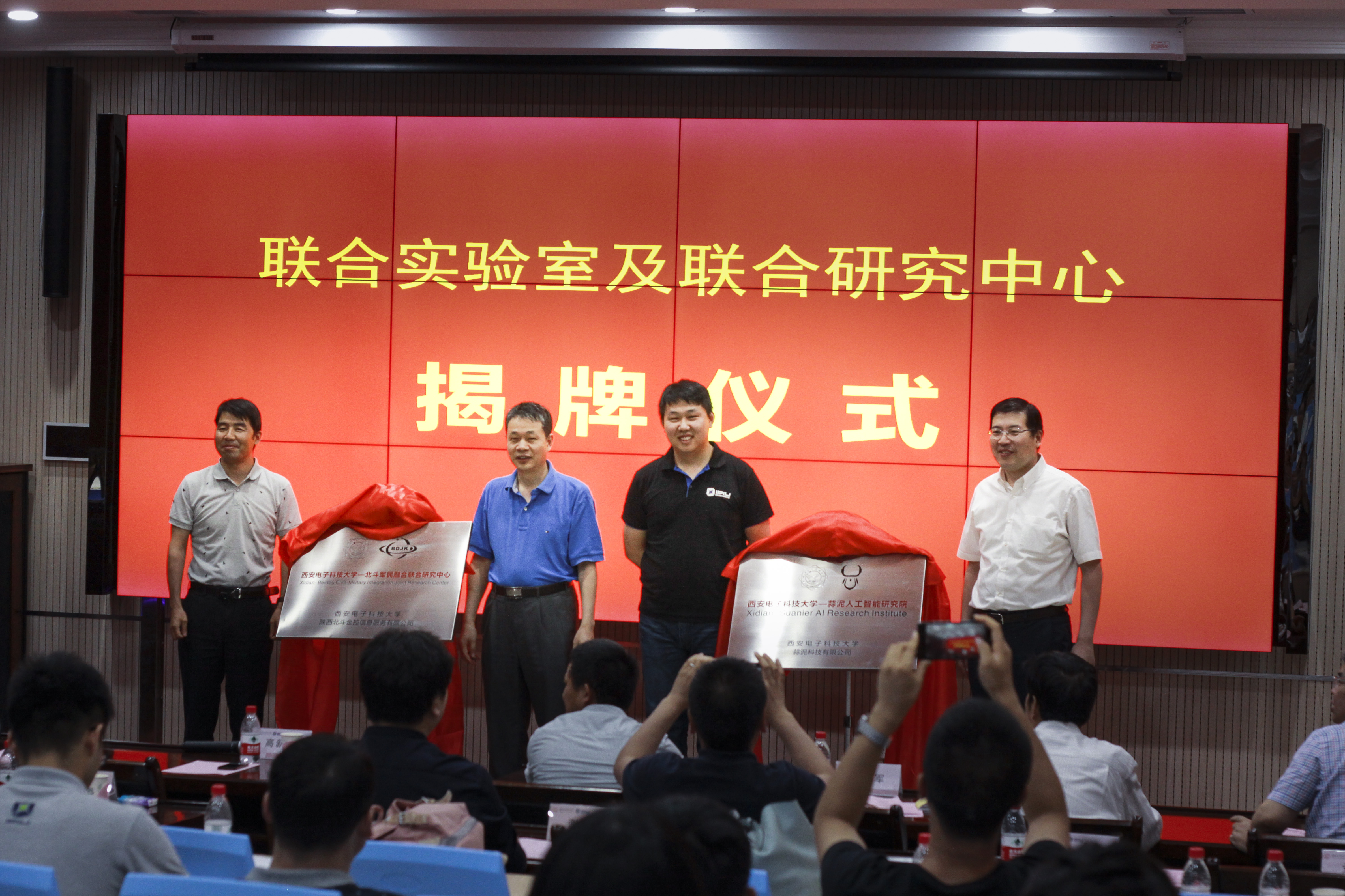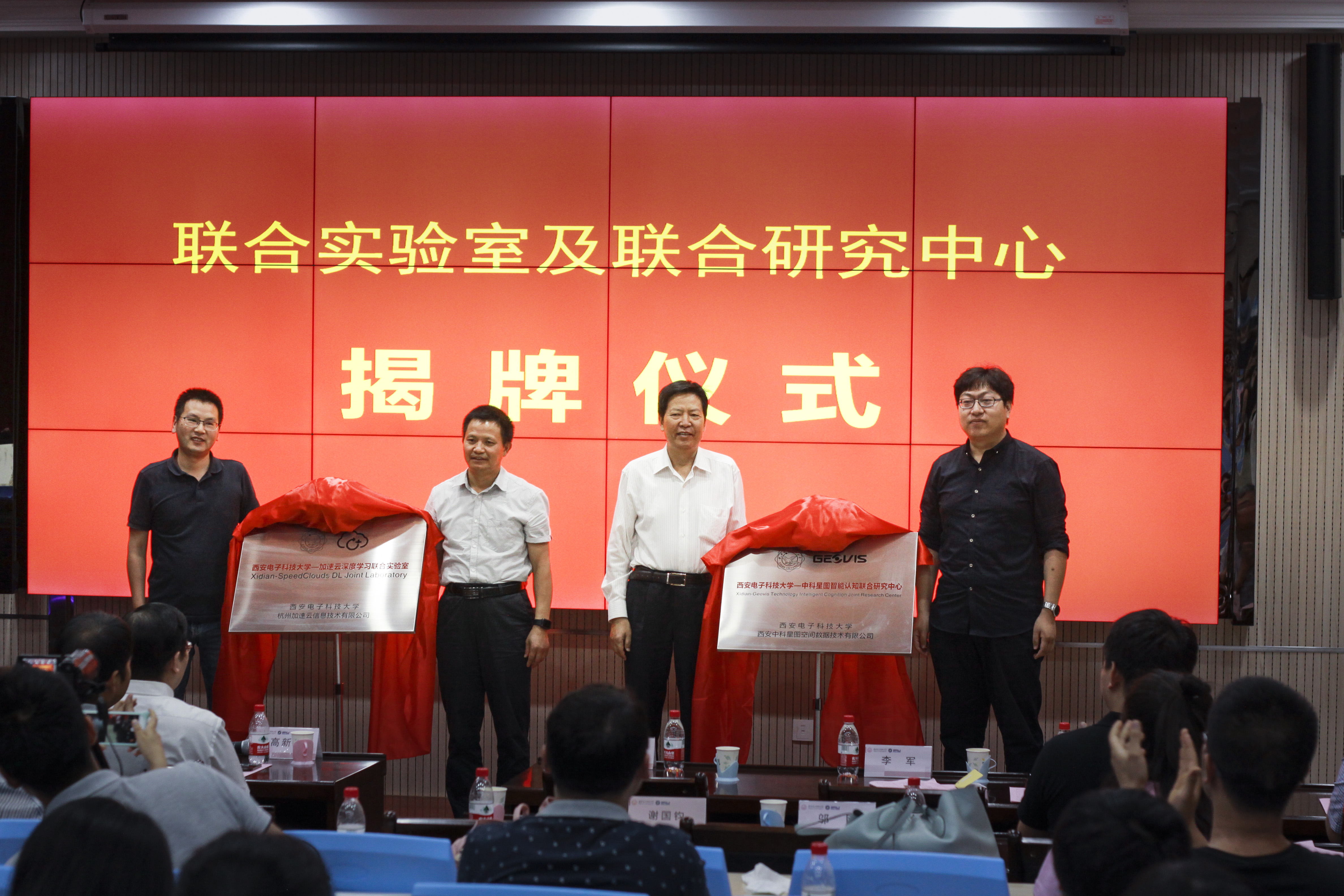 此外,开元集团网站-北斗军民融合联合研究中心、开元集团网站-蒜泥人工智能研究院、开元集团网站-加速云深度学习联合实验室及开元集团网站-中科星图智能认知联合研究中心也正式揭牌,陕西北斗金控信息服务公司董事长李卫斌、西安蒜泥科技有限公司创始人杨少毅、谢雯雯、杭州加速云信息技术有限公司CEO邬刚、西安中科星图空间数据技术有限公司总经理谢国钧出席了仪式并揭牌,电子工程学院院长廖桂生致辞祝贺。