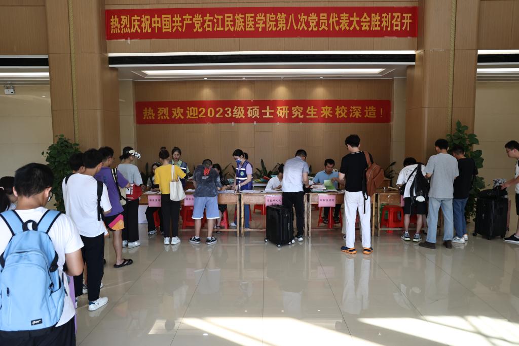 7月7日,学校迎来了2023级临床医学院、口腔医学专业学位研究生新生。研究生学院、临床医学院和口腔医学院的迎新工作人员以饱满的热情迎接来自全国各地的莘莘学子。国际会议中心大厅报到处,在志愿者服务队的指引和帮助下,研究生新生有序办理报到手续。