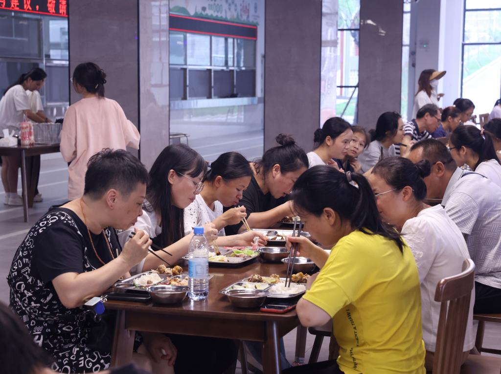 老师同学们在食堂“试吃”。