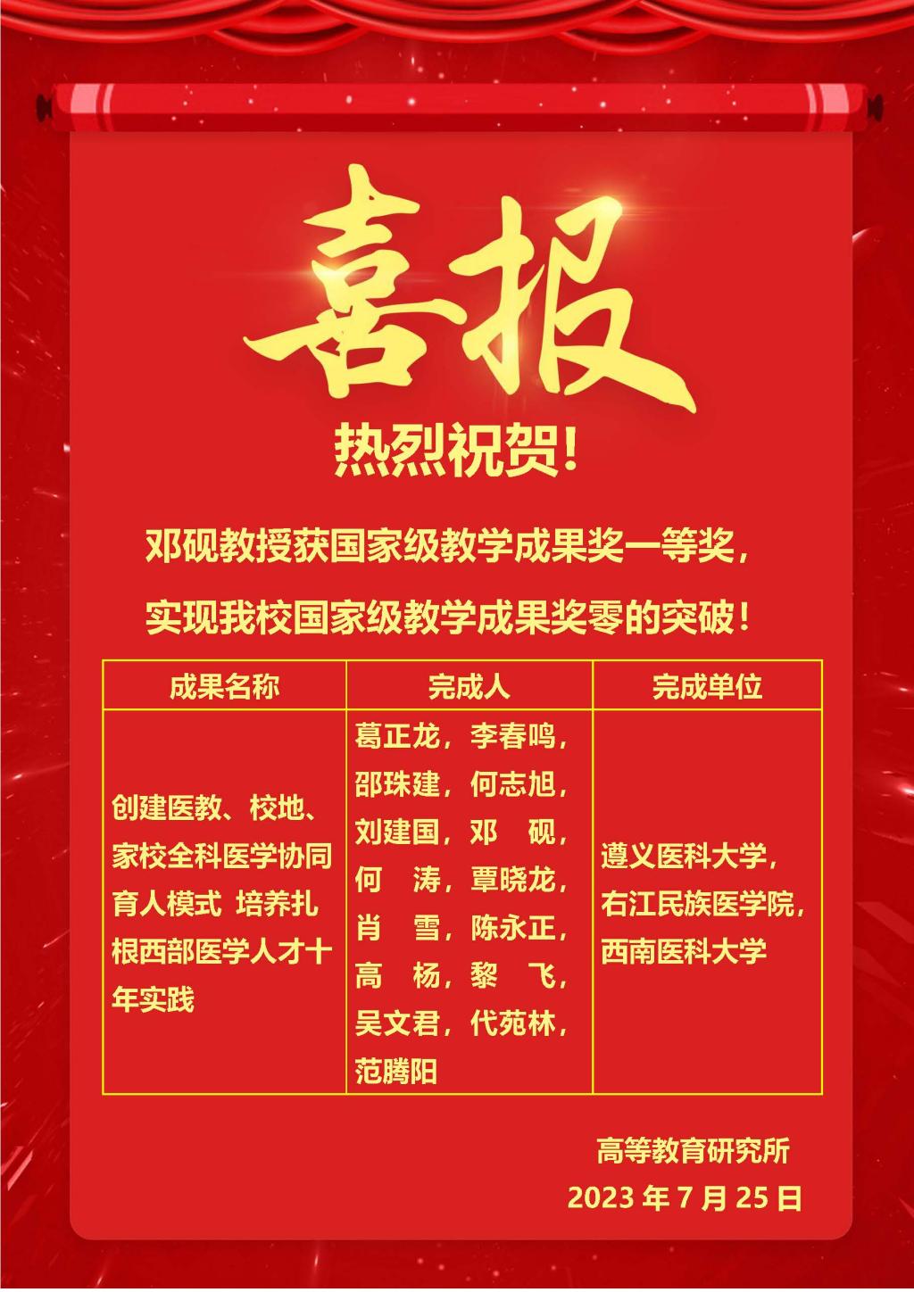 【YOUYI喜讯2023 28】开云官网获2022年国家级教学成果奖一等奖1项,实现国家级教学成果奖零的突破!