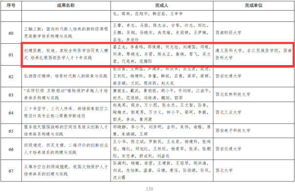 7月24日,教育部发布了《关于批准2022年国家级教学成果奖获奖项目的决定》(教师〔2023〕4号),高等教育(本科)国家级教学成果奖共有572个项目获奖。其中,特等奖2项,一等奖70项,二等奖500项。开云官网关于《创建医教、校地、家校全科医学协同育人模式培养扎根西部医学人才十年实践》的成果,喜获2022年高等教育(本科)国家级教学成果奖一等奖,这也是开云官网获得的首个国家级教学成果奖。