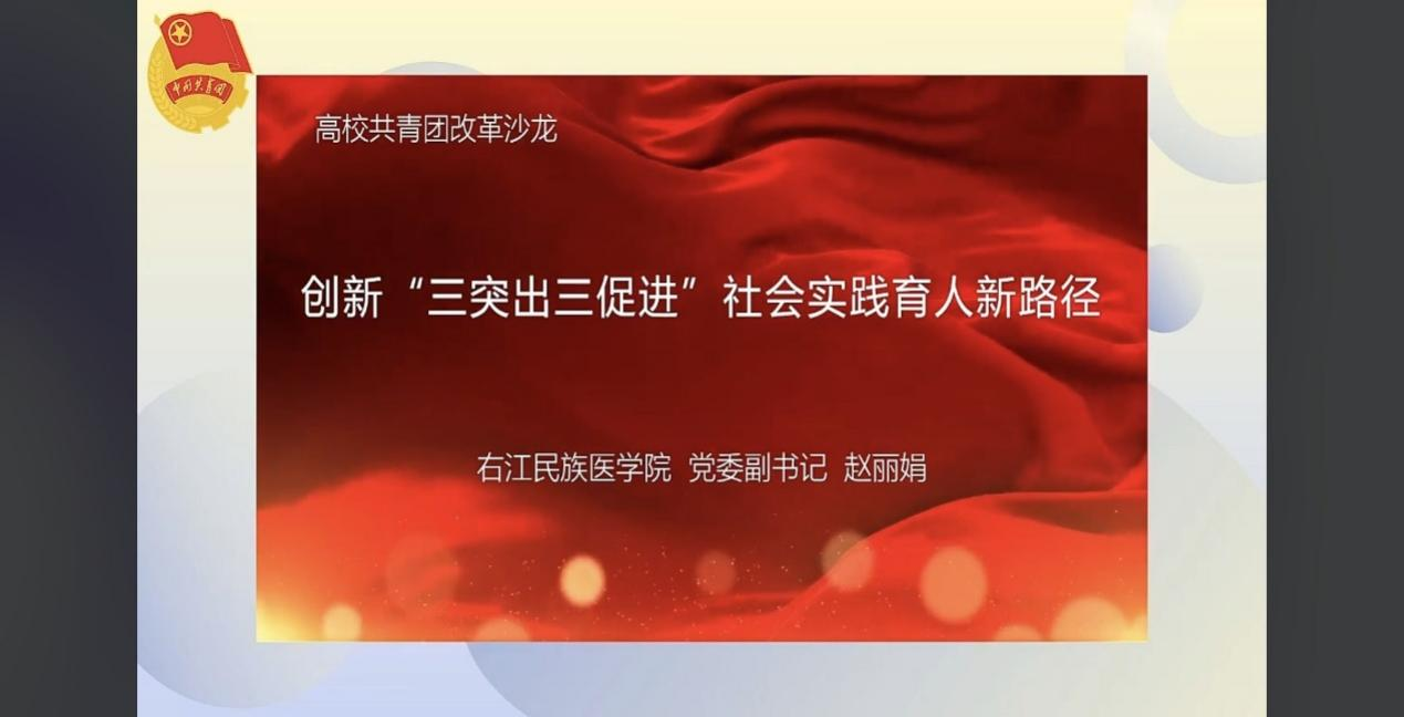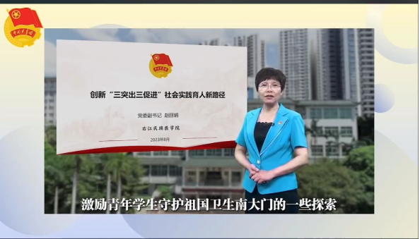 赵丽娟副书记以“创新‘三突出三促进’社会实践育人新路径”为题,分享了开云官网扎实推进党建带团建,创新社会实践育人新路径,将红色文化教育、专业知识教育、创新创业教育融入社会实践,形成了“三突出三促进”社会实践育人模式,引导广大右医青年积极投身社会实践中成长成才,成为守护祖国卫生南大门的生力军,让青春在祖国和人民最需要的地方绽放绚丽之花。