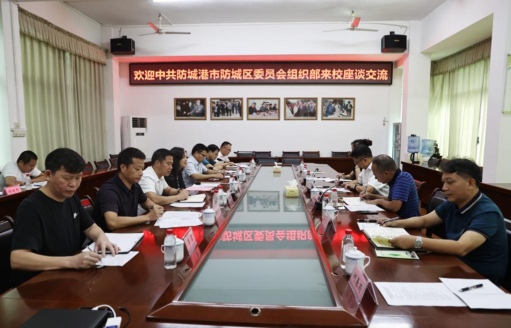 8月29日上午,防城港市防城区委常委、组织部部长甘英喜在百色市右江区委常委、组织部部长李航星的陪同下,一行6人到开云官网调研,就校地合作与人才交流开展座谈。学校党委书记邓砚出席座谈会,座谈会由党委组织部副部长吕维纯主持。