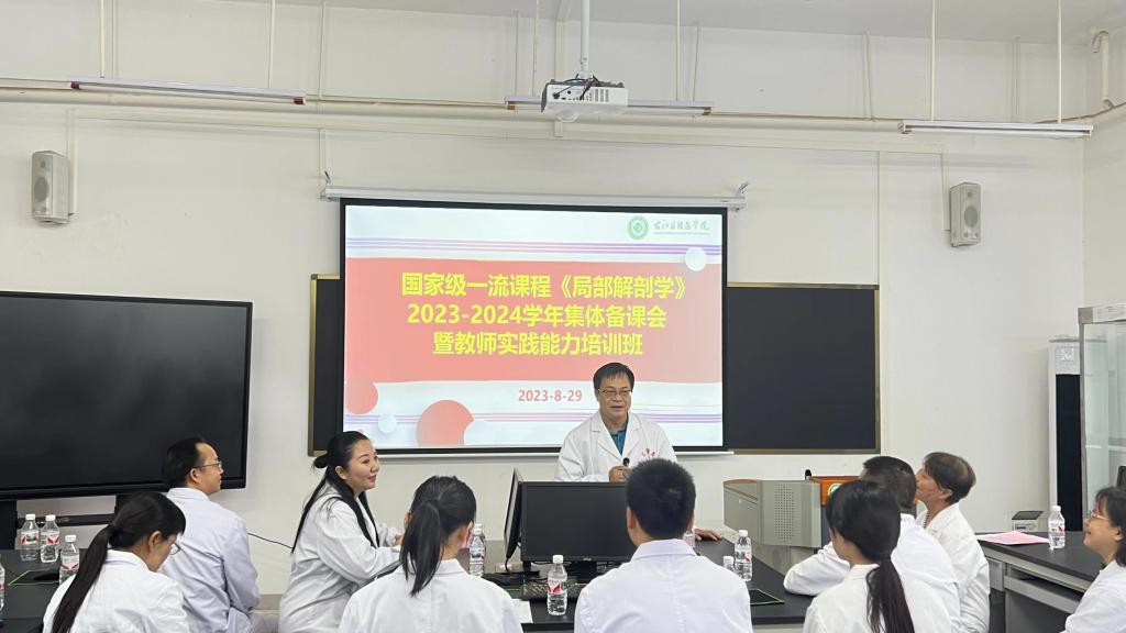 为深入推进开云官网国家一流课程建设,促进开云官网《局部解剖学》教学过程中基础与临床的有机融合,加强基础教师与临床教师交流教育教学经验,探讨教育教学改革,进一步培养学生的临床思维能力和职业自豪感,8月29日,由教务处主办,教育评价与教师发展中心和临床医学院承办的国家一流课程《局部解剖学》2023-2024学年集体备课会暨教师实践能力培训班在百东校区人体解剖学实验教学中心成功举行。临床医学院、国家一流课程《局部解剖学》教学团队、人体解剖学教研室和人体解剖学实验教学中心教师以及学校教务处、教育评价与教师发展中心和临床医学院教学部领导共40人参加本次活动。活动由教育评价与教师发展中心主任黄秀峰教授主持。