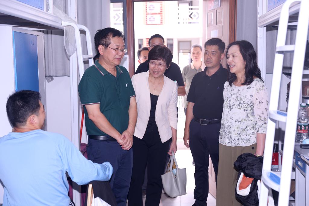 校领导一行还深入学生公寓看望已经入住的学生,与他们亲切交流,询问他们对新校区环境、住宿、餐饮情况等的意见建议,希望同学们在搬迁过程中要注重安全,鼓励同学们要互相帮助,尽快适应新校区新学期的学习生活,争取在新的学习生活氛围中取得更大的进步。(文/莫 军 图/黄宏春 编辑/杨承锐 审核/麻霄汉)