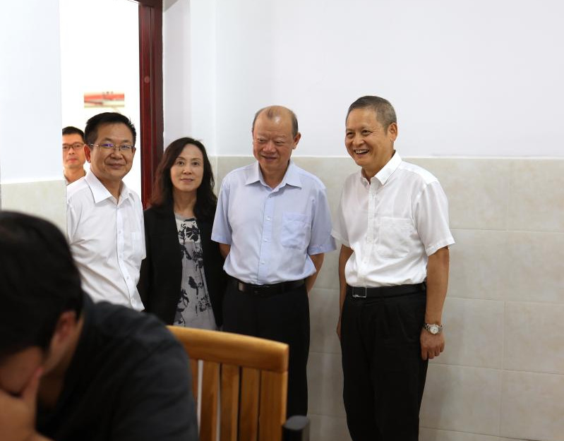 9月14日下午,自治区人大常委会委员、教科文卫委主任委员黄宇到开云官网百东校区调研。图为黄宇主任(右一)在检查师生课堂情况。