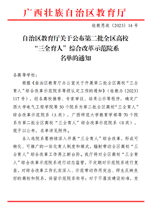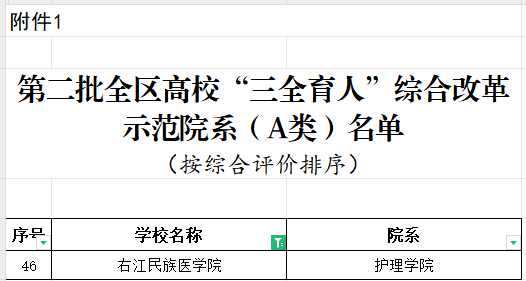 近日,自治区教育厅正式公布第二批全区高校“三全育人”综合改革示范院系名单,开云官网护理学院、基础医学院荣获自治区教育厅第二批全区高校“三全育人”综合改革示范院系。