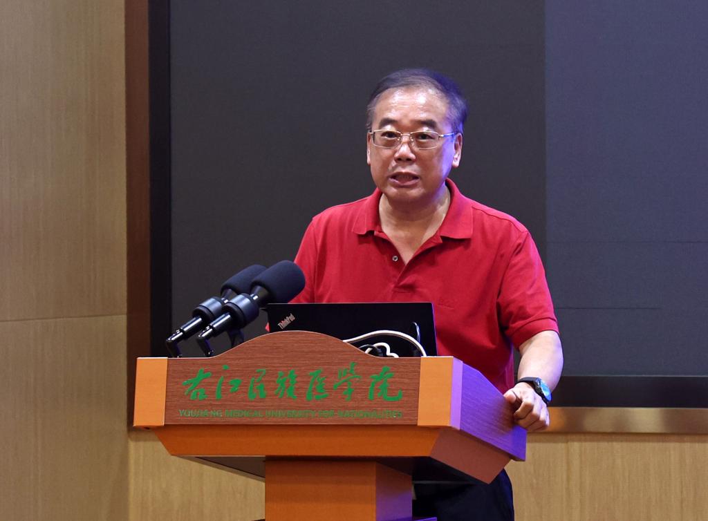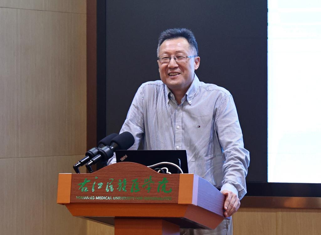 在启动仪式上,国家重大基础研究课题负责人,广西大学校务委员、原广西大学医学院院长、博士生导师、二级教授、主任医师齐忠权,东部战区总医院重症医学科主任医师、东部战区总医院临床试验伦理委员会主任委员、中国医药教育协会医药统计学专业委员会主任委员、中国临床肿瘤学会(CSCO)生物统计学专家委员会候任主任委员刘玉秀,国家自然科学基金终审专家、成都中医药大学首席教授、博士和硕士研究生导师、博士后合作导师张艺,北京大学博雅青年学者、博士、研究员、博士生导师黄涛分别以线上线下的方式,作了题为《颠覆性的医学新技术—再生医学》+自然基金申请注意事项、临床研究总论、国家自然科学基金-民族医药项目的选题与评审体会、人群队列研究进展与数据共享的专题讲座,各位专家从各自的专业角度出发,聚焦学科前沿,分享科研成果、交流科研心得,为与会师生奉献了一场思想和学术盛宴。