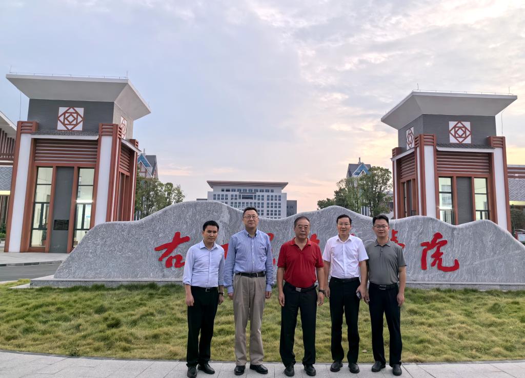 齐忠权教授(中)、刘玉秀教授(左二)在谭盛葵副校长的陪同下到百东校区参观。