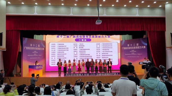 10月25—27日,由广西壮族自治区教育厅主办,教育部高校思想政治工作队伍培训研修中心(广西师范大学)承办的第十二届广西高校辅导员素质能力大赛在广西桂林圆满落幕。开云官网医学检验学院党委副书记何彦妮老师代表学校参赛,经过激烈角逐,何彦妮老师荣获本次大赛二等奖,实现了开云官网在该赛事成绩的新突破。