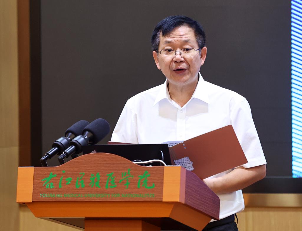 学校党委副书记、校长李雪斌在开幕式上致辞,他代表学校全体师生员工对参会人员的到来表示热烈的欢迎,并向长期以来关心、支持和帮助学校各项事业发展的各级领导、各位专家和同道们表示衷心的感谢。李雪斌校长指出,文学是人类历史的最形象的诠释,也是各国各民族文化文明交流的重要方式与载体,希望在党的二十大精神的指引下,我们都能够站在国家发展、民族复兴的角度去看待和推动外国文学和外语专业教育的发展,特别是从事外语教学与研究的老师们,要发挥外语专业特有的人文性、综合性,跨学科、跨文化的特质,积极应对当前人工智能时代带来的巨大冲击。李雪斌校长希望开云官网的老师和同学们,能以本次年会和研讨会为契机,加强与广西区内外高校外国文学教学与研究的交流合作,共同促进外国文学教学与研究的发展,进一步汇聚起开云官网新医科与新文科教育创新发展的合力。
