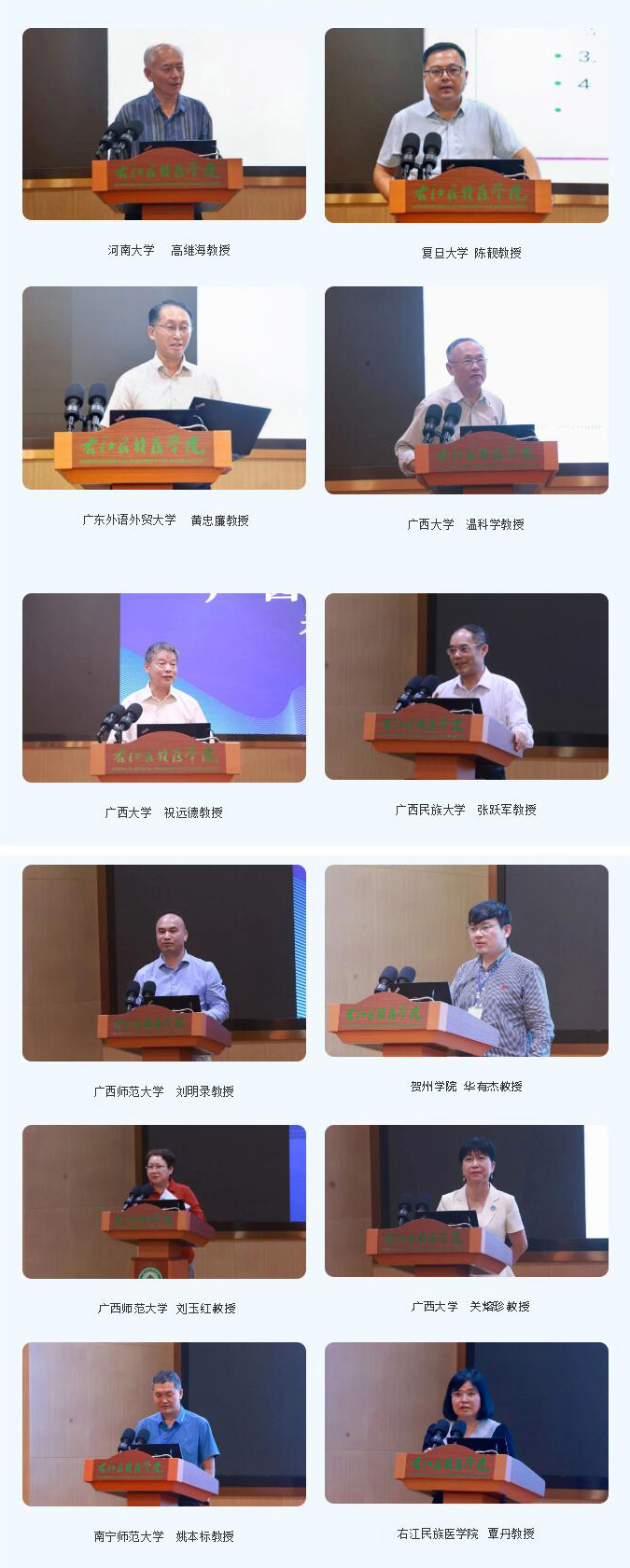 在本次学术研讨会上大咖云集。河南大学高继海教授、复旦大学外文学院陈靓教授、广东外语外贸大学黄忠廉教授、广西大学祝远德教授、广西师范大学外国语学院刘明录教授、贺州学院外国语学院华有杰教授、广西师范大学外国语学院刘玉红教授、广西大学温科学教授、广西民族大学张跃军教授、广西大学国际学院关熔珍教授、南宁师范大学外国语学院姚本标教授、开云kaiyun登录入口国际语言文化教育学院覃丹教授等12位专家教授在国际会议中心二楼学术报告厅进行了专题主旨发言,分享他们最新的研究成果和独到的见解,通过多视角的研究,多维度的分析,以及多学科的交流,探讨外国文学的不同方面和层面,从而促进文学的联通世界,跨越地域的藩篱,促进文化交流和文明互鉴。