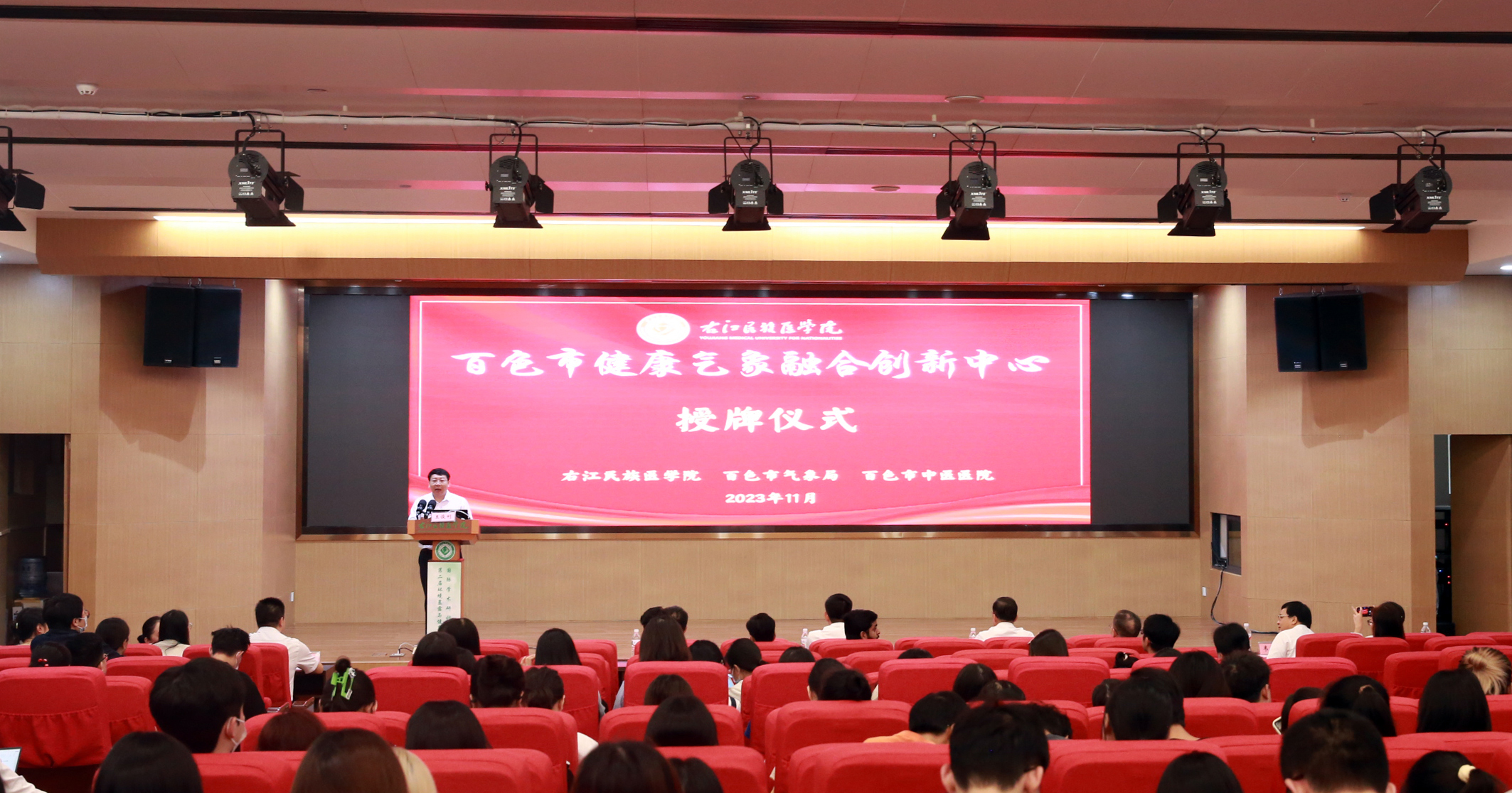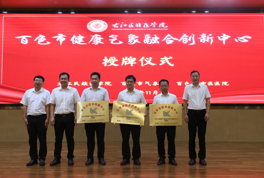 仪式上,学校党委常委、副校长谭盛葵宣读百色市健康气象融合创新中心获批文件,并举行了百色市健康气象融合创新中心授牌仪式。