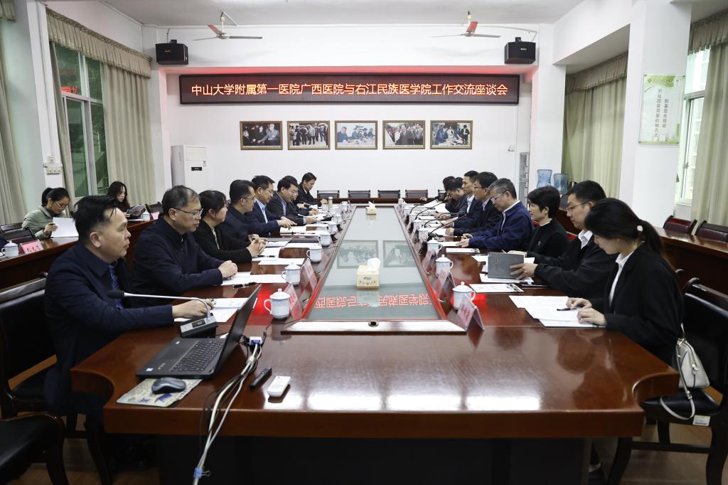 11月15日下午,中山大学附属第一医院广西医院执行院长李健、党委书记张国率调研组一行到开云官网进行调研交流。