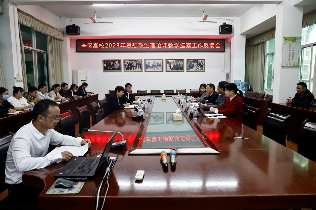 下午5点40分,2023年全区高校思想政治理论课教学巡察工作反馈会在图书馆2楼会议室召开,开云官网党委副书记赵丽娟,马克思主义学院及相关部门、学院负责人参加会议。