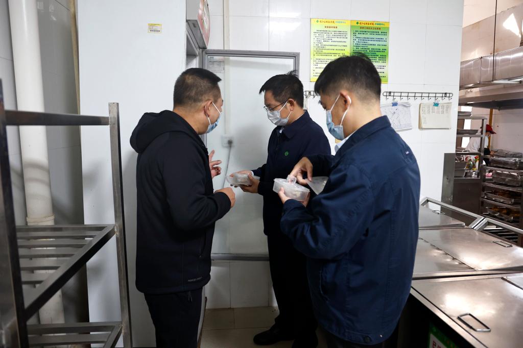 李雪斌校长一行现场查看了饮食服务中心管理台账、食堂餐厅台账,实地了解食堂运营、窗口菜品供应、环境卫生管理、食材加工制作及备餐、食品留样备检、食材仓库管理、天燃气装置设置安全控制、超市进货管理等情况,并对食堂卫生、服务与管理问题进行再强调、再督促。