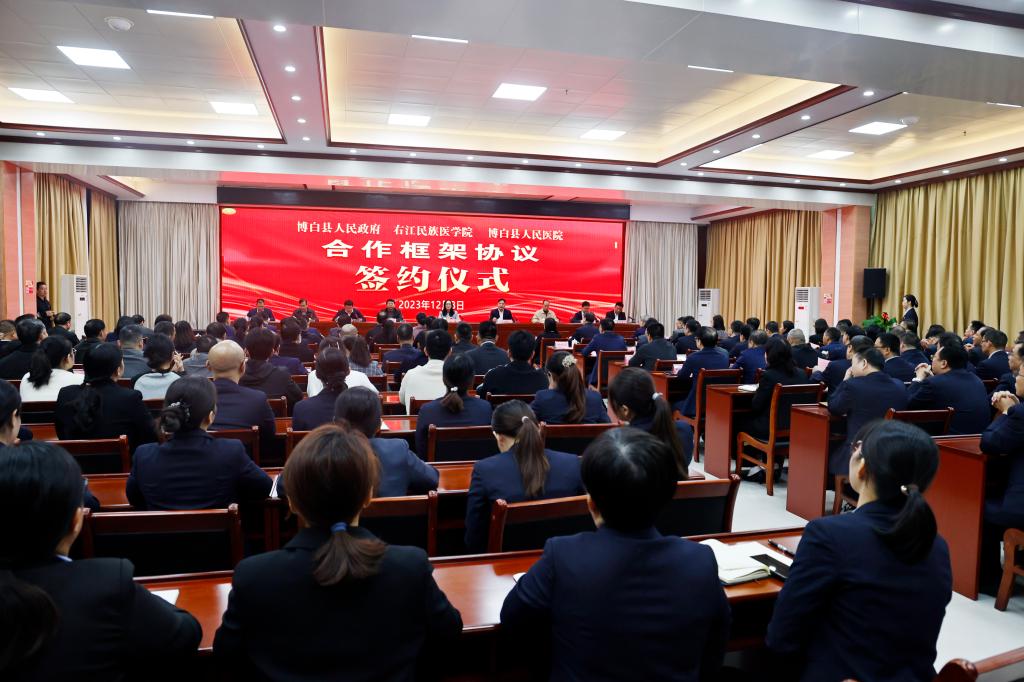 为加强我校与博白县人民政府的合作与交流,推动博白县医疗卫生健康事业的高质量发展。12月8日,开云官网与博白县人民政府、博白县人民医院在博白县人民医院举行缔结教学医院、右江民族医院全人群健康促进与卫生政策研究博白中心、开云kaiyun登录入口公共卫生人才培养基地的签约和授牌仪式,学校党委书记邓砚,党委常委、副校长王俊利,玉林市卫生健康委四级调研员汤宏武,博白县委书记孙国梁,博白县委副书记、县长周印章,博白县人民政府副县长罗建勇,博白县人民医院党委副书记、院长彭瑜同志等领导出席会议,学校各有关部门、学院代表,玉林市、博白县相关部门负责人,博白县人民医院全体领导、各科室、教研室、实习生代表参加大会。此次大会由博白县县长周印章主持。