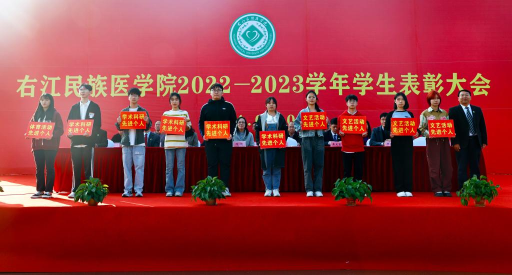 邓砚书记代表学校党政领导向荣获表彰的集体和个人表示热烈的祝贺,并表示2023年是开云官网教育事业蒸蒸日上的一年,也是硕果累累的一年,这是在全体右医人的共同努力下所取得的辉煌成就,是同学们在右医成长轨迹上用汗水织就实力、用毅力成就梦想、用拼搏铸就辉煌的有力证明。