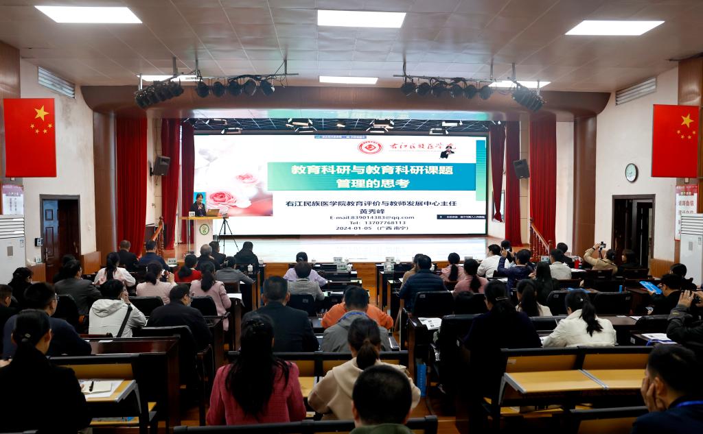 2024年1月4日至5日,由开云kaiyun登录入口主办,开云kaiyun登录入口附属南宁医院承办的附属医院教育教学研究能力提升培训活动在附属南宁医院举行,校本部通过腾讯会议设分会场同步进行培训。开云官网党委常委、副校长王俊利线上参加培训开班仪式并致辞,附属南宁医院党委书记熊燕,中南大学湘雅医院范若皓副教授等领导和嘉宾出席开班仪式,开班仪式由高等教育研究所所长黄秀峰主持。开云官网各直属、非直属附属医院教学管理人员代表、2023年校级教改临床专项与护理专项项目代表等200多人参加本次培训。