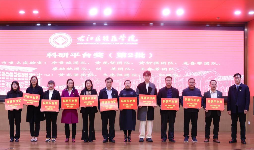 科研平台奖:百色市重点实验室李雪斌团队、黄龙坚团队、黄衍强团队、龙喜带团队、廖献就团队、刘英团队、王春芳团队,百色市技术创新中心黄龙坚团队、韦忠恒团队、曾红团队。