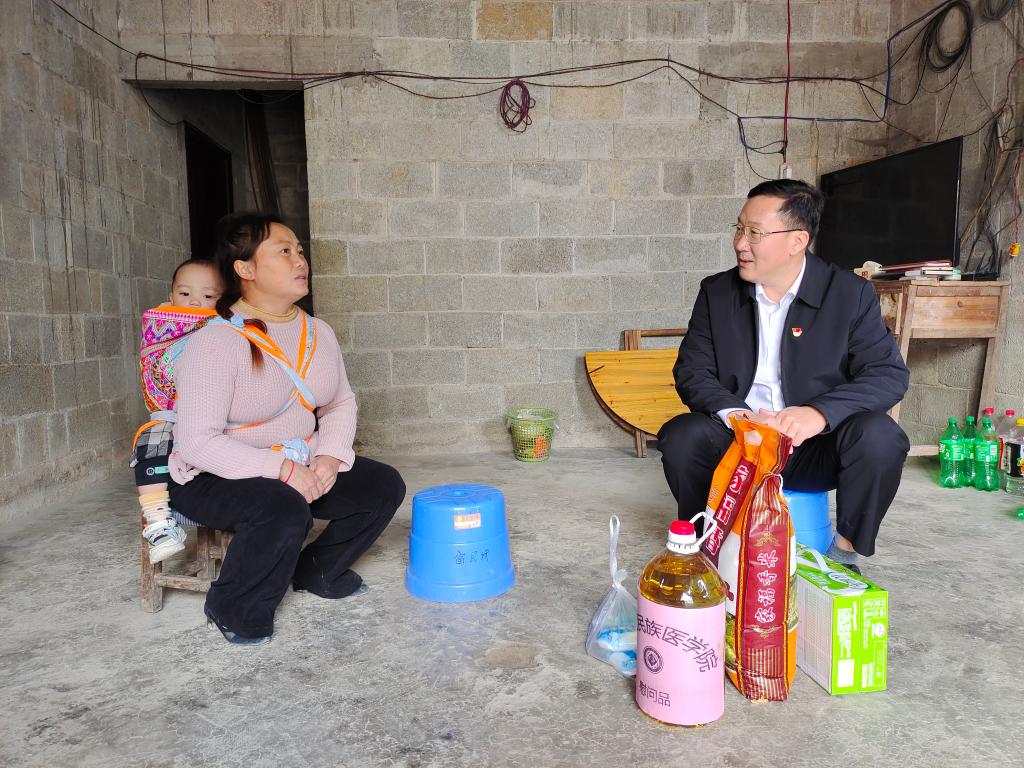 学校党委常委、副校长谭盛葵到西林县普合苗族乡岩腊村帮扶户家中走访慰问。