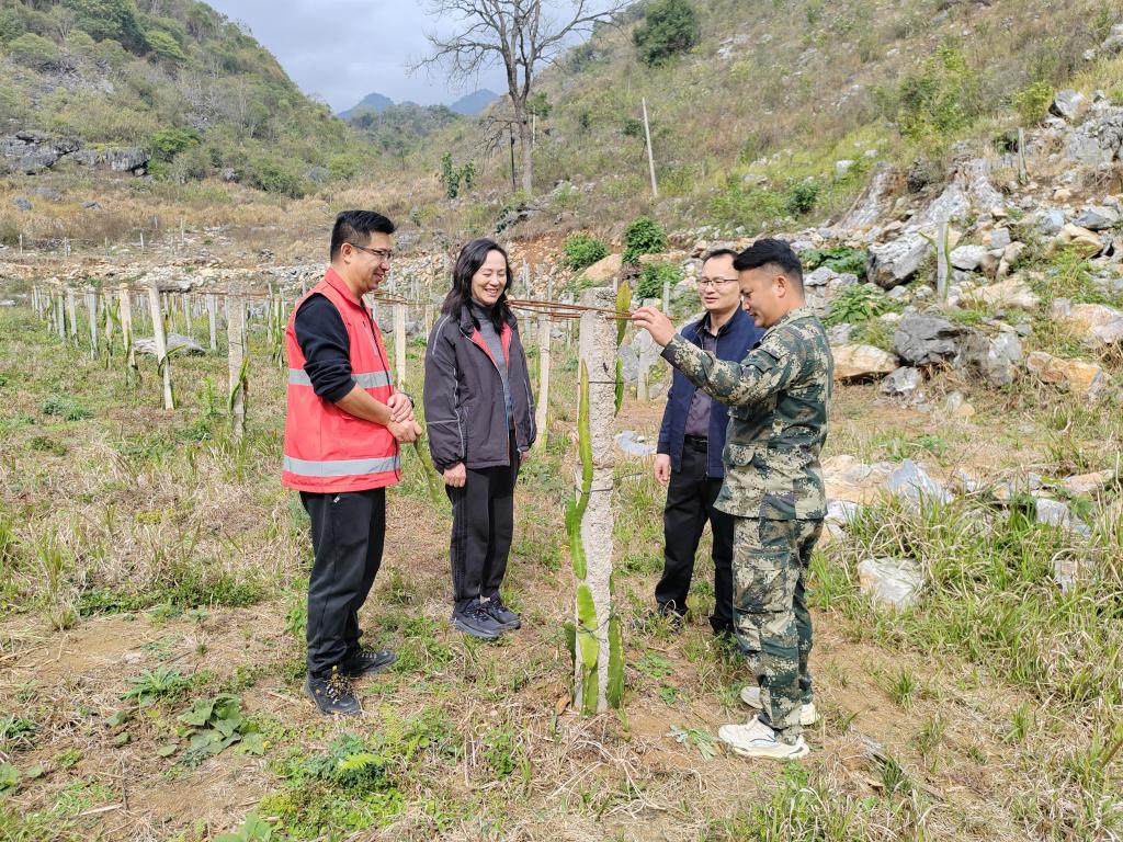 邓砚书记到岩腊村“高山火龙果”新种植点了解学校帮扶产业项目扩大发展情况。