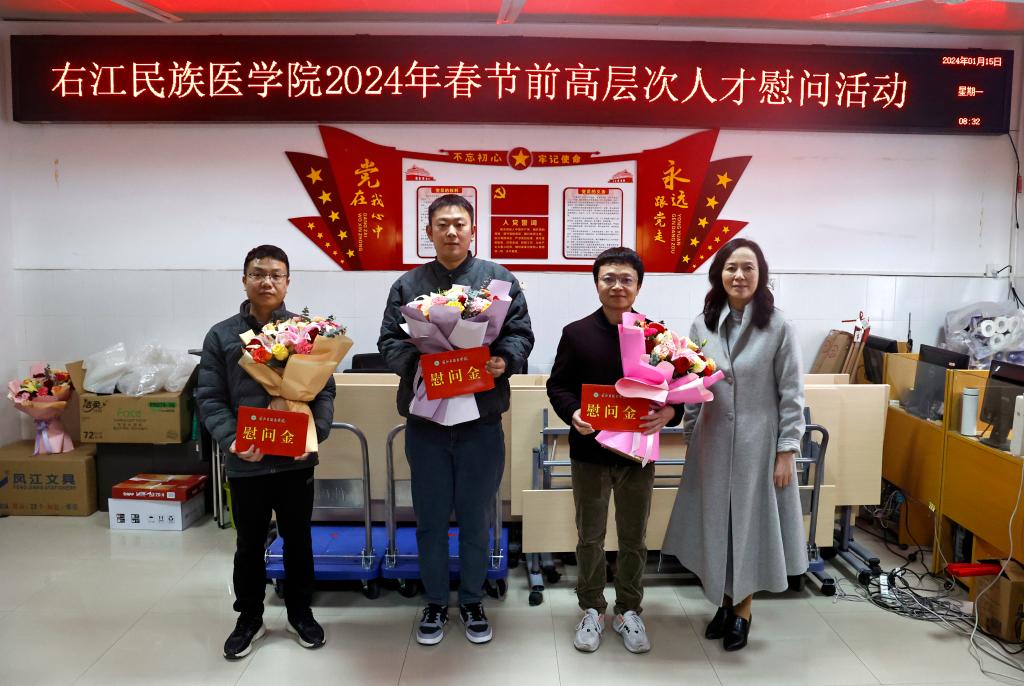 新春将至,岁寒情暖。1月17日至19日,校领导邓砚、李雪斌、冼季夏、解继胜、谭盛葵、王俊利两办、组织部、宣传部、人事处等相关部门负责同志走访慰问学校高层次人才代表,送上慰问金和慰问品高层次人才代表及其家属致以诚挚问候和美好祝福。