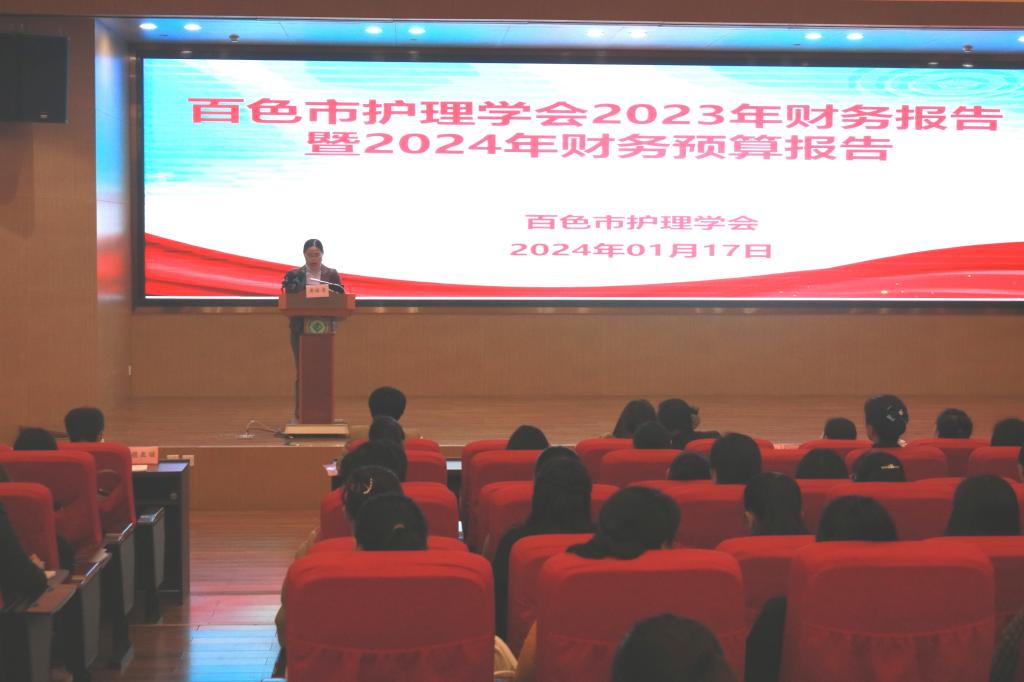 百色市护理学会副理事长、百色市护理质控中心副主任、百色市第二人民医院护理部主任黄妹青主任护师作百色市护理学会2023年财务报告暨2024年财务预算报告,与会理事对报告进行了审议。