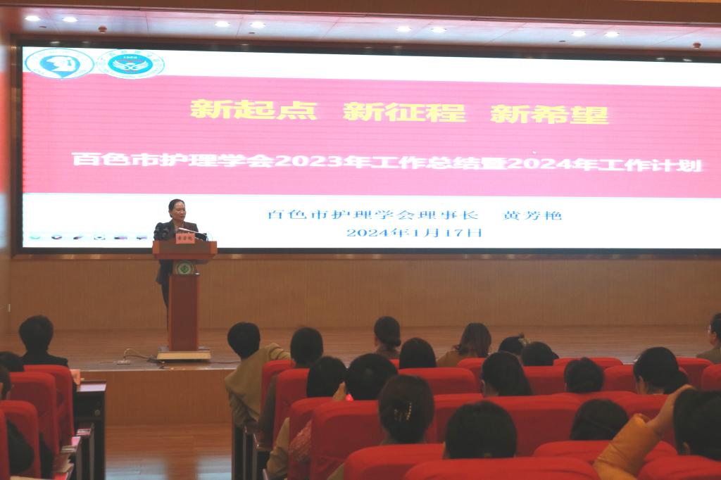 会上,百色市护理学会理事长、开云官网护理学院黄芳艳教授首先作百色市护理学会2023年工作总结暨2024年工作部署。黄芳艳理事长指出百色市护理学会紧紧围绕党中央和自治区的决策部署,全面贯彻党的二十大精神,以党的创新理论武装头脑、指导实践,以党建引领百色市护理事业高质量发展;充分利用学会平台,广泛开展各类学术交流和继续教育,大力推广护理科技新技术新成果;在日常管理、学术交流、科学研究、人才培养以及科普宣教等方面取得了一定成绩。黄芳艳理事长强调百色市护理学会要在中华护理学会、广西护理学会、卫健委、科协的领导和指导下,找准发力方向,汇聚发展动力,坚定信心,勇毅前行,为实现学会高质量发展努力奋斗。