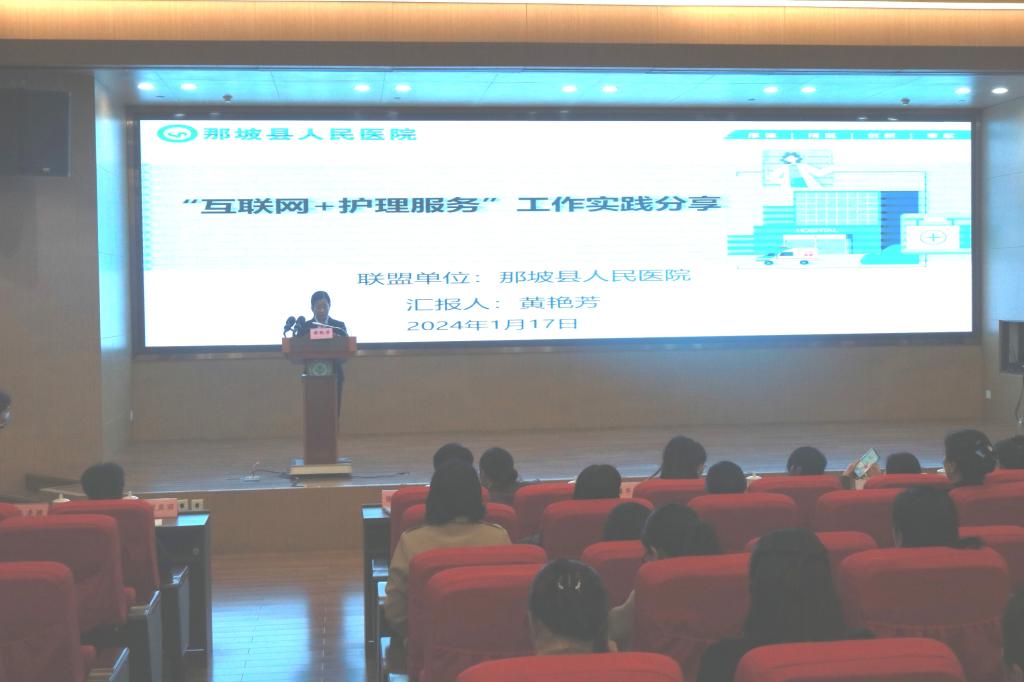 那坡县人民医院护理部副主任黄艳芳、靖西市人民医院护理部副主任农丽琳分别作“互联网+护理服务”工作经验分享。