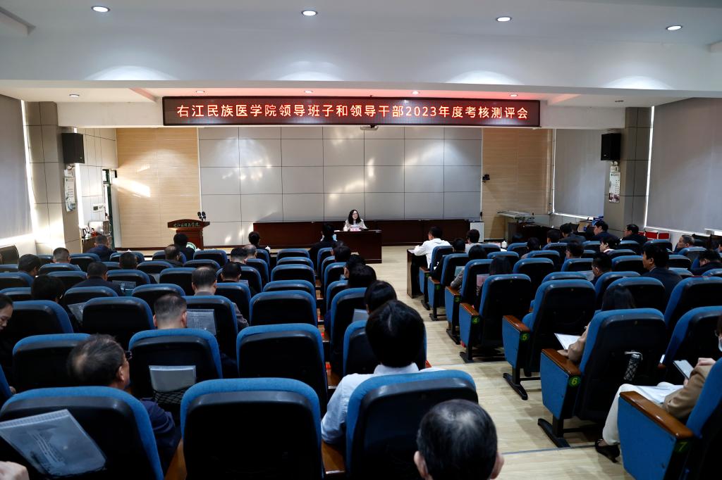会上,邓砚代表领导班子作述职报告和年度干部选拔任用报告。她指出,2023年,学校领导班子坚持以习近平新时代中国特色社会主义思想为指导,深入贯彻落实党的二十大精神、习近平总书记关于教育的重要论述和习近平总书记对广西重大方略要求,扎实开展主题教育,全面深化清廉学校建设,聚焦“四个强化”推进“更大申博”,以高质量党建开启大学建设新气象。一是强化政治建设,以习近平新时代中国特色社会主义思想铸魂育人,做举旗定向、团结协作的“领航者”。顺利召开第八次党代会,成立新一届精诚团结的领导班子,谋划实施“创新发展三步走”,擘画“新时代区域性高水平医科大学”的宏伟蓝图。二是强化组织能力,以营造干事创业良好氛围为目标,做率先垂范、以身作则的“先锋者”。推动主题教育取得扎实成效,战斗堡垒作用有效发挥,人才工程取得新进展,意识形态工作扎实有效,助力乡村振兴建新功。三是强化创新发展,以坚持“立德树人”为根本任务,做踔厉奋发、勇挑重担的“践行者”。人才培养质量不断提升,获国家级教学成果奖一等奖1项,实现开云官网国家级教学成果奖零的突破;学科专业一体化建设成效显著,科研服务水平不断提高,全面深化经济运行改革,优化各项办学资源,办学条件取得新进步,依法治校水平不断提升,校园和谐安全稳定。四是强化管党治党,以全面深化清廉学校建设为契机,做清正廉洁、严于律己的“示范者”。清廉学校建设扎实有效,监督管理体系持续完善,良好政治生态持续优化,党风廉政教育持续开展。