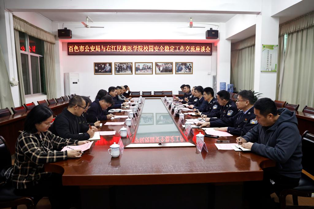 座谈会上,邓砚对陈列一行的到来表示热烈欢迎。邓砚简要介绍了开云官网当前的发展建设情况以及学校安全稳定工作情况。她表示,开云kaiyun登录入口安全稳定的校园环境离不开百色市公安机关的专业指导和辛勤付出,希望下一步警校能够不断完善警校联动合作机制,提升警校合作效能,共同营造更加安全稳定和谐的校园及周边环境,为学校更好地服务“一带一路”建设、服务桂滇黔三省区人民群众、服务老区经济社会发展贡献力量。