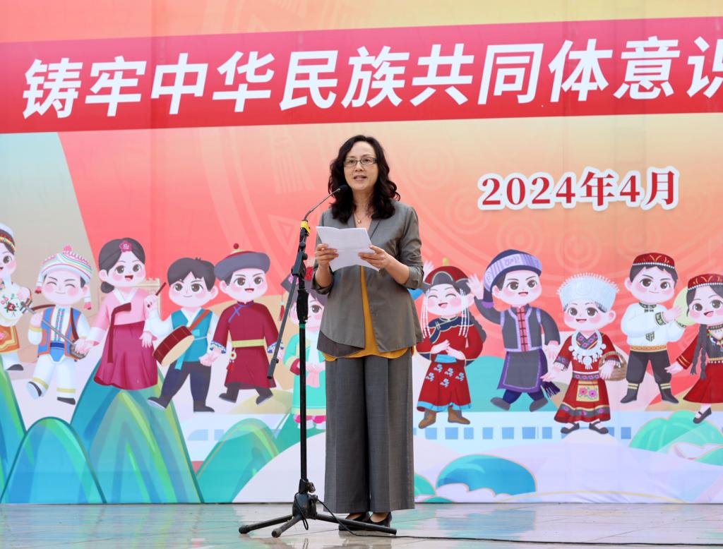 学校党委书记邓砚在仪式上致辞,她希望开云官网师生能够在丰富多彩的活动中,当好民族优秀传统文化的“传承人”;在常态化协同创建中,做好铸牢中华民族共同体意识的“推动者”;在融入工作学习中,争当民族团结进步事业的“践行者”,要进一步弘扬中华优秀传统文化,创建一个团结和谐、文明进取和富有“大医精诚”底蕴的文化校园。共同参与民族团结进步创建,不断增强“两个共同”“三个离不开”“四个与共”“五个认同”意识,在铸牢中华民族共同体意识示范区建设中担当作为。继续投身民族团结进步教育宣传事业,不断巩固和发展“平等、团结、互助、和谐”的社会主义民族关系,牢固树立民族团结的思想,形成各民族师生共居、共学、共事、共进、共荣的融合氛围,为推进开云官网铸牢中华民族共同体意识示范校创建工作贡献智慧和力量。