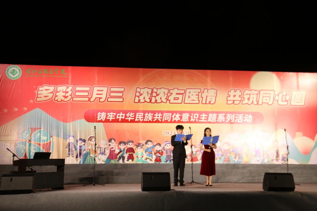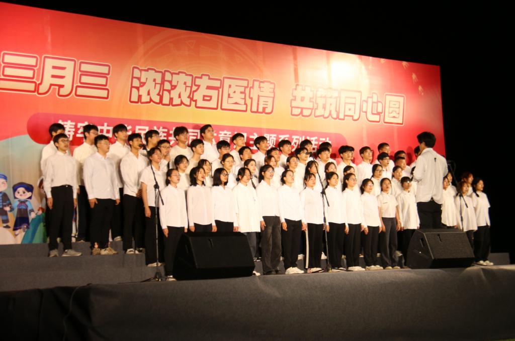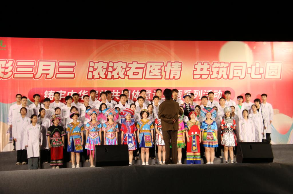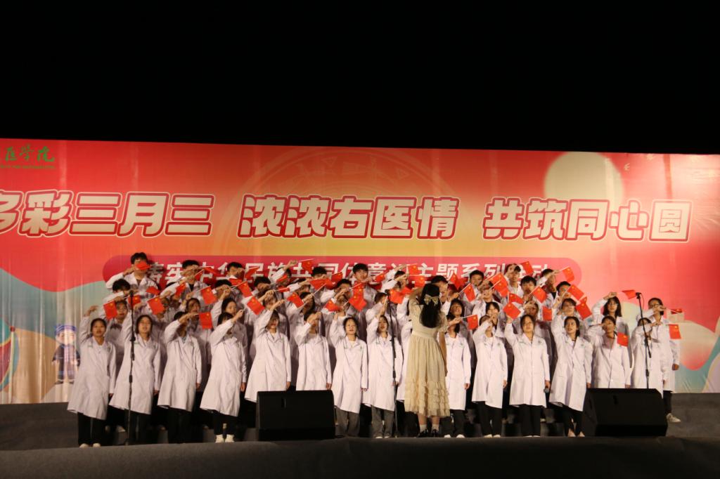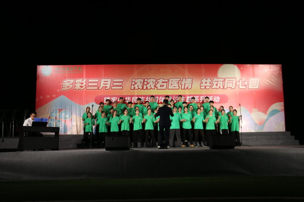 为弘扬⺠族文化,丰富校园文化生活,促进⺠族团结,当晚,开云官网在百东校区举行以“唱响主旋律,畅想右医梦”为主题的歌咏比赛。校领导邓砚、李雪斌、赵丽娟、黄龙坚、冼季夏、解继胜、王俊利以及各二级学院师生代表到场观看比赛。
