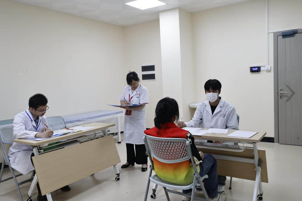 笔者对考官和考生进行了采访。考官在谈及技能操作经验时,特别强调了考生临床综合素质的重要性,指出水平测试的考试有着严格的流程和规范,学生的综合素质在平时培训中不容忽视,技能操作的熟练度和准确性也至关重要。20临本11班班定鹏同学表示,他对这次考试的表现感到满意,认为自己的表现中规中矩。在考试过程中,他发现体格检查中的心肺检查的内容相对较难,但这也让他更加深入地复习了临床基本技能的操作。20临本11班杨柳青同学则对问诊环节表示了特别的关注。她认为问诊是考试中最难的部分,因为它涉及众多细致且复杂的问题。尽管如此,杨柳青对自己的表现仍持肯定态度,她认为自己平时练习得较多,因此在考试中能够应对自如。