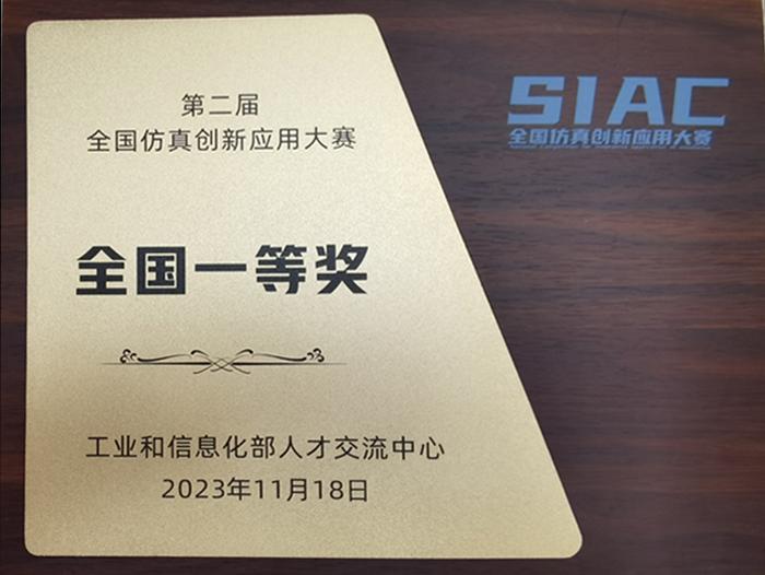学生荣获第二届全国仿真创新应用大赛获得一等奖。