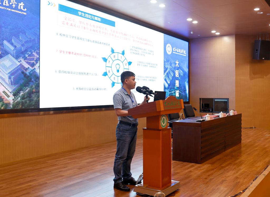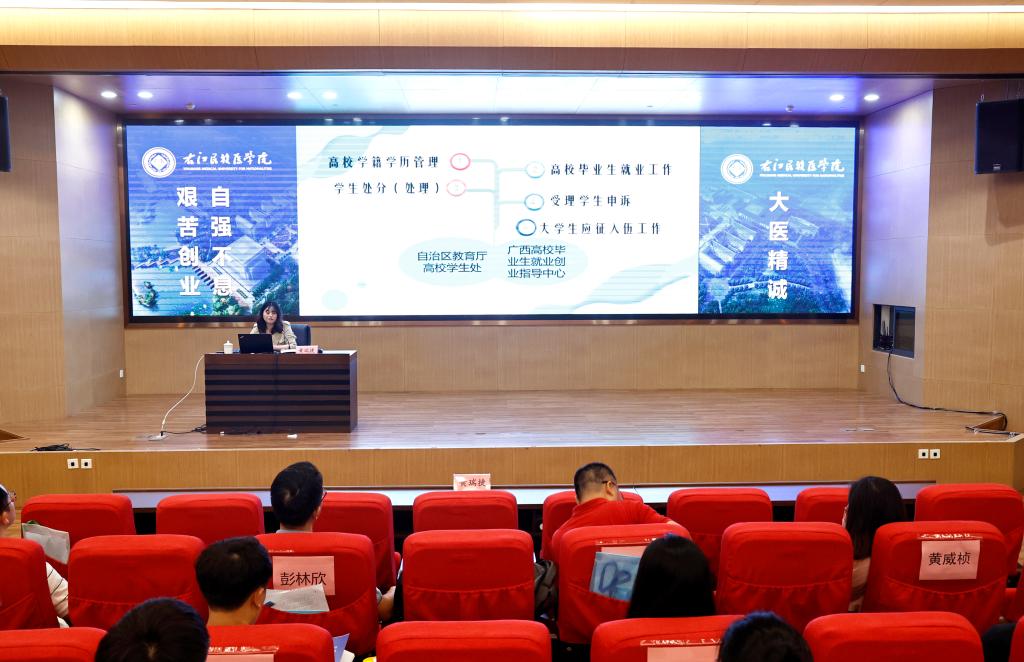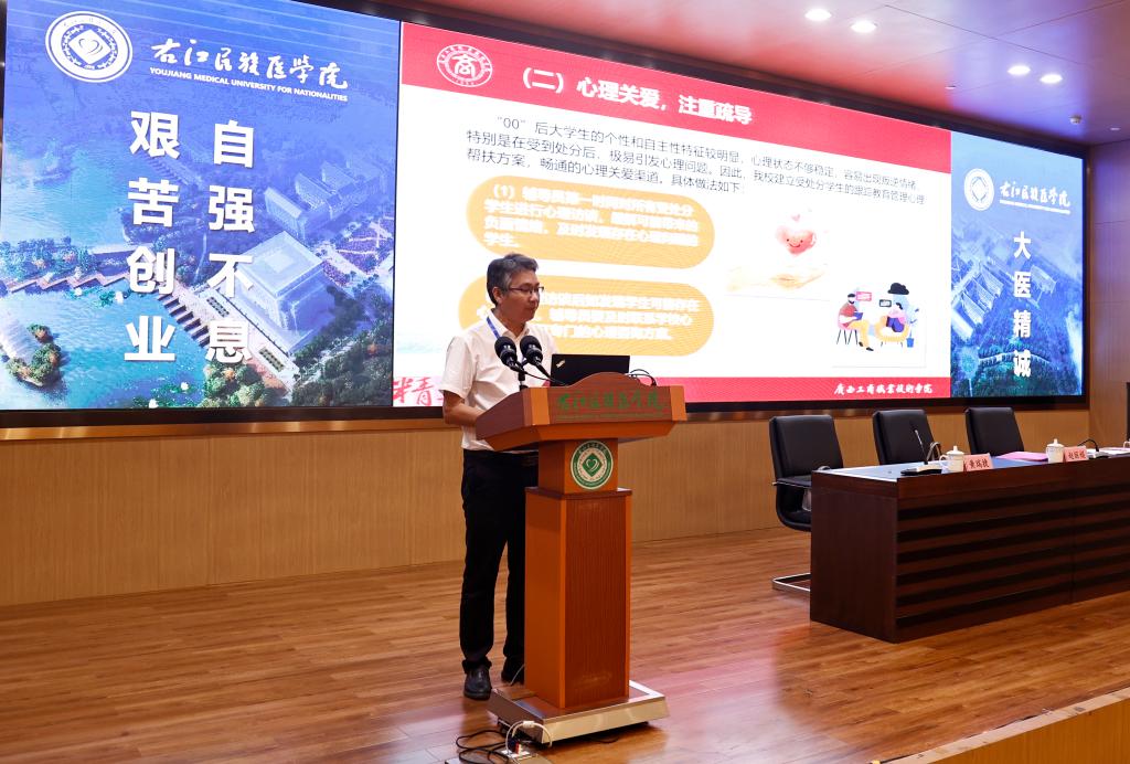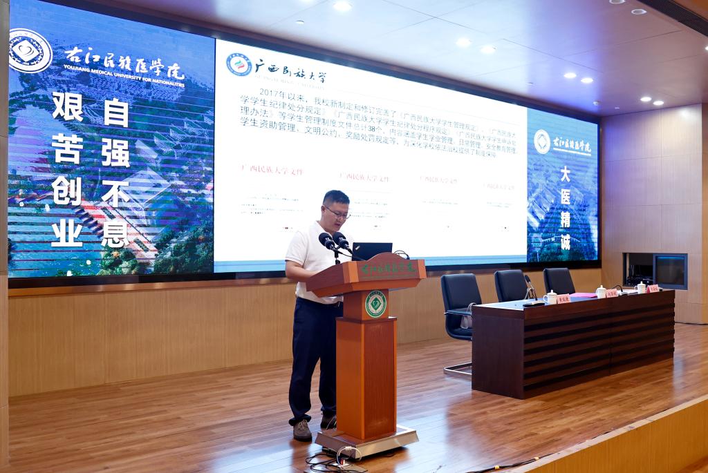 自治区教育厅高校毕业生就业创业指导中心黄瑞捷作《高校学生处分(处理)和申诉工作案例分析》专题讲座。