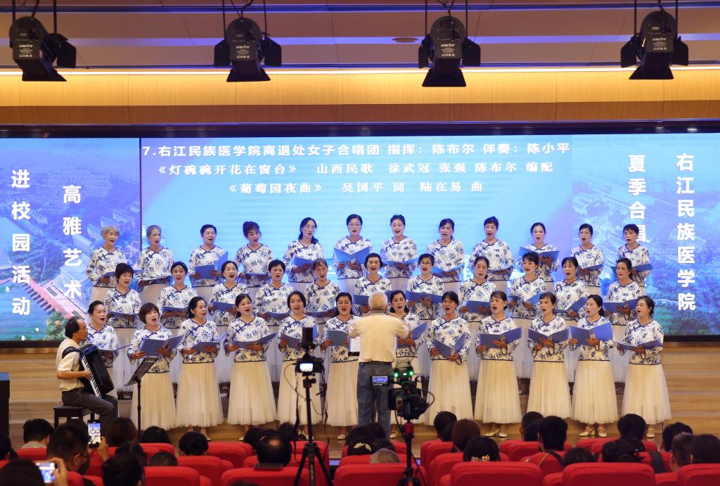 开云官网离退处女子合唱团演唱《灯碗碗开花在窗台》《葡萄园夜曲》。