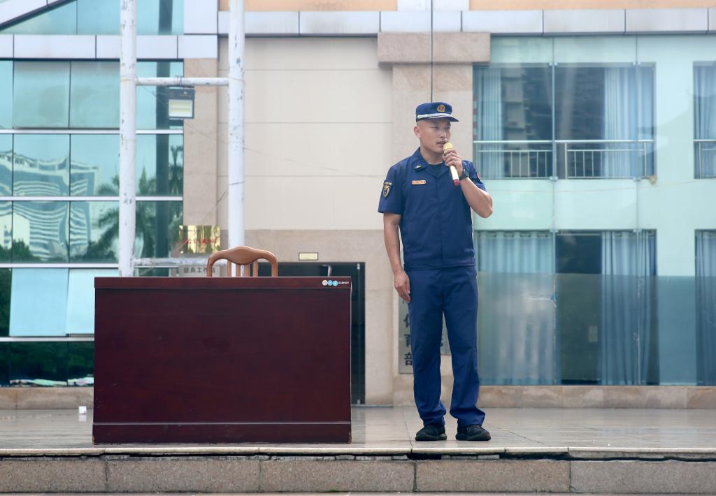 在活动中,百色市消防救援支队特勤站副站长袁方宇结合自身经历,讲解了关于消防法律法规、如何报火警、火场逃生自救等方面的消防基本常识,详细介绍了灭火器的使用方法、初起火灾的扑救、油盘起火扑灭等方面的基本技能,以及防溺水安全6不准的重要性,提醒各位同学们注意防范。