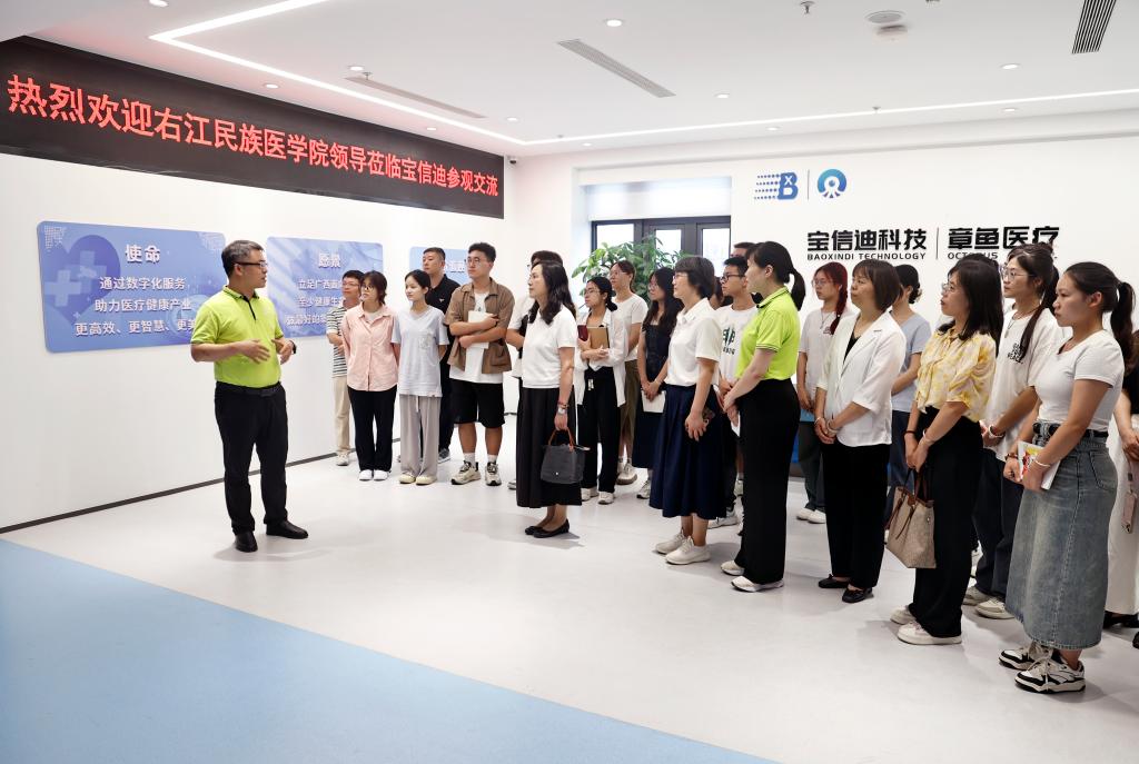 广西宝信迪科技有限公司成立于2008年7月,专注于医疗健康数字化建设领域,是数字广西建设领导小组办公室认定的第一批数字广西建设标杆引领重点示范企业。在活动中,广西宝信迪科技有限公司总经理张余安带领大家参观了公司,深入介绍了企业的发展历史,以及医疗健康数字化在智慧教育、智慧医疗等领域的应用及其发挥的重要作用。