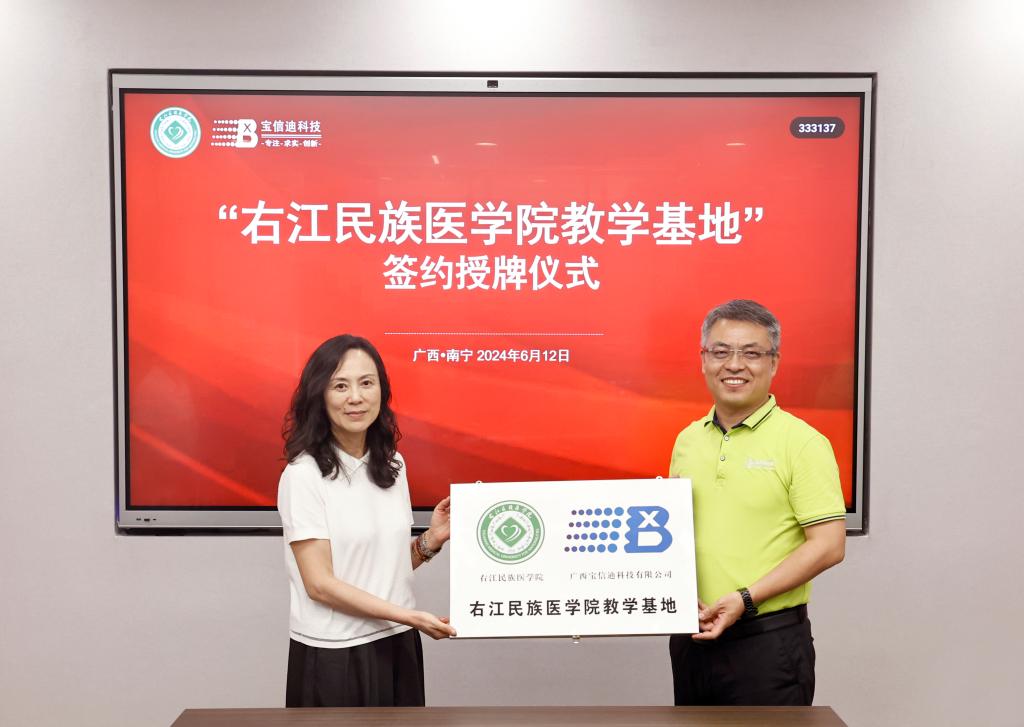 邓砚向广西宝信迪科技有限公司授予“开云kaiyun登录入口教学基地”牌匾。