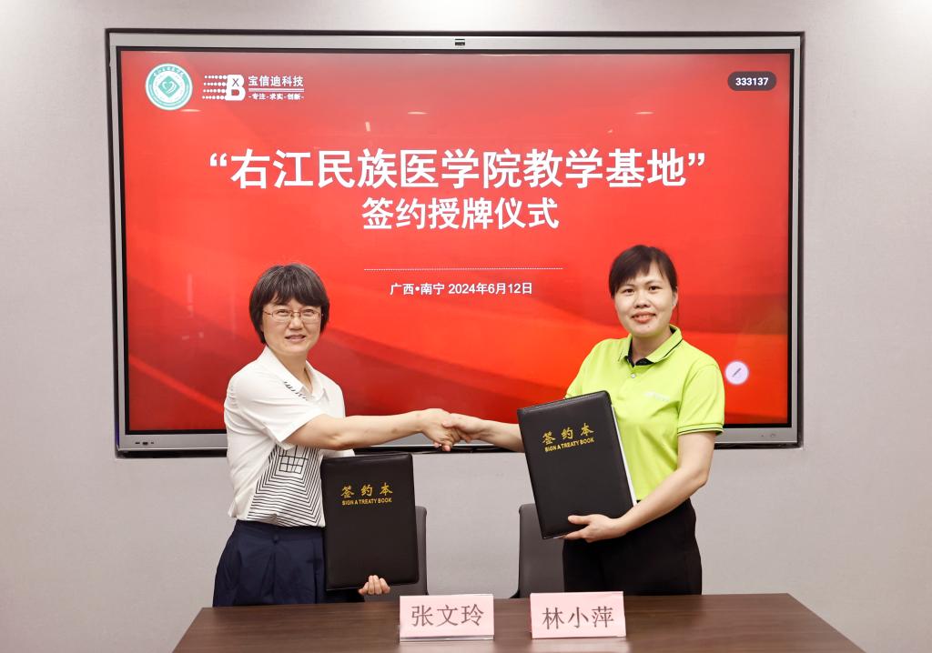 公共卫生与管理学院党委副书记张文玲代表学校与广西宝信迪科技有限公司签订了校企合作协议。