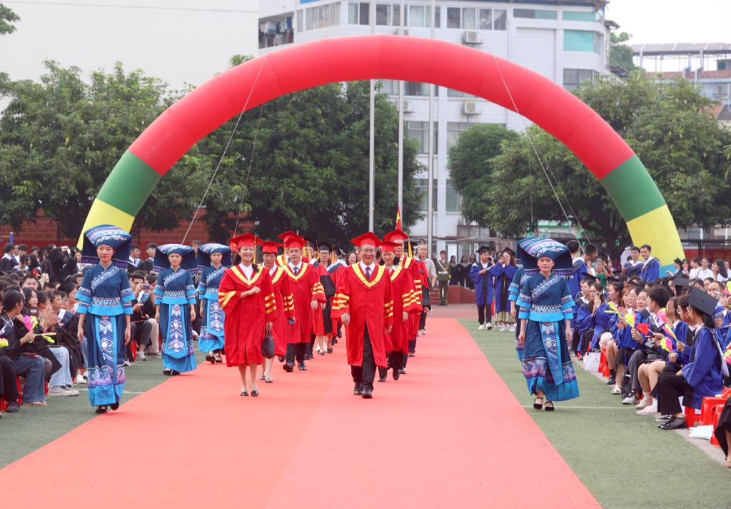 毕业典礼在国歌声中拉开序幕,学校党委书记邓砚宣布毕业典礼正式开始。