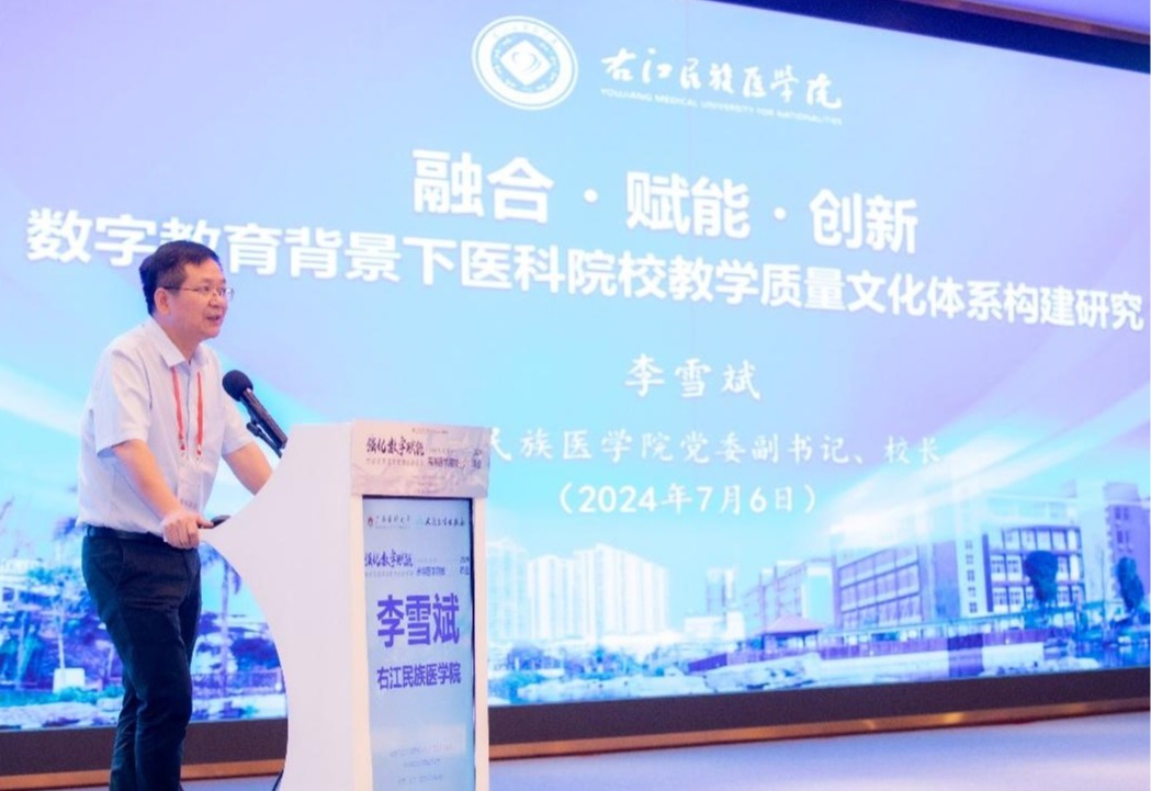 李雪斌校长代表学校作了《融合・赋能・创新 数字教育背景下医科院校教学质量文化体系构建研究》主题报告,简要介绍了开云官网办学历史、办学格局和办学定位,分享了开云官网数字教育背景下构建地方医科院校质量保障体系和质量文化为民族地区和广大基层培养大批新时代高质量“三得”医学人才的经验和做法。