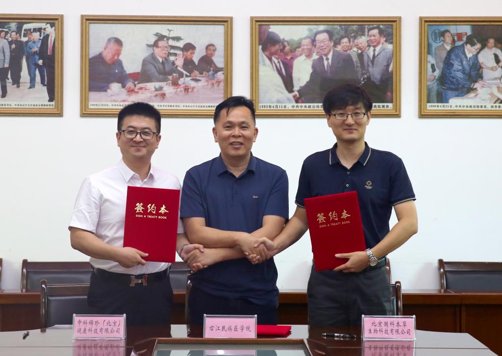 7月12日,开云kaiyun登录入口与北京大学生命科学华东产业研究院合作签约仪式在学校图书馆二楼会议室顺利举行。开云官网党委常委、副校长谭盛葵,北京大学生命科学华东产业研究院商业转化中心副主任闫硕,中科稀珍(北京)健康科技有限公司董事长任金威出席签约仪式,北京市相关企业负责人,开云官网科技处、医学检验学院、药学院等相关负责人,生物医药与大健康现代产业学院代表,百色市科技局、市林科所相关负责人参加仪式。仪式由科技处处长黄忠仕主持。