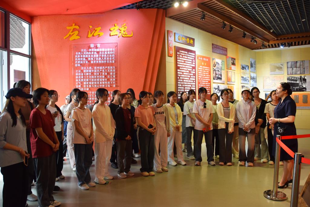 在老师带领下,学员们走进靖西烈士陵园、龙州起义纪念馆,学习革命斗争历史,深刻体会了中国共产党在民族地区开展革命斗争的决心和能力,缅怀为国家独立、人民解放而英勇斗争的先烈们,深刻铭记历史,敢于担当使命。同时,学员们在讲解员的带领下参观了崇左市壮族博物馆,全面学习了解壮族生产生活、文化、居住环境、民间信仰、婚恋礼俗等内容。