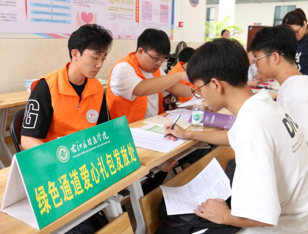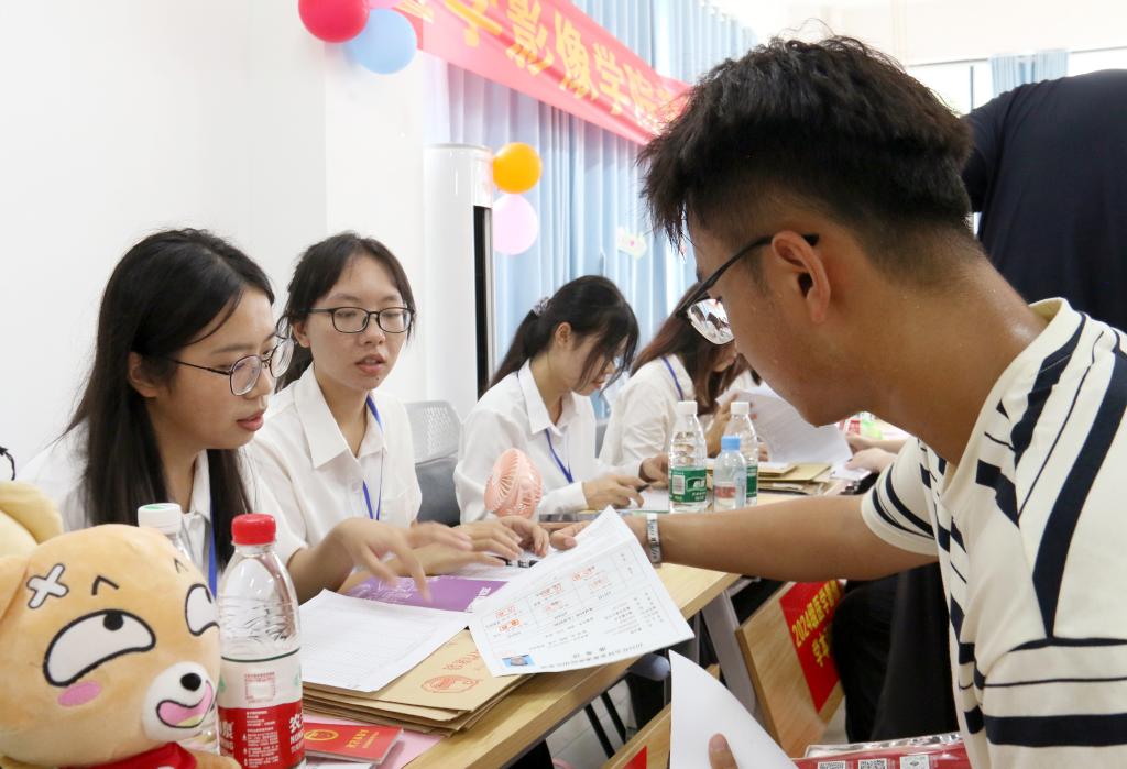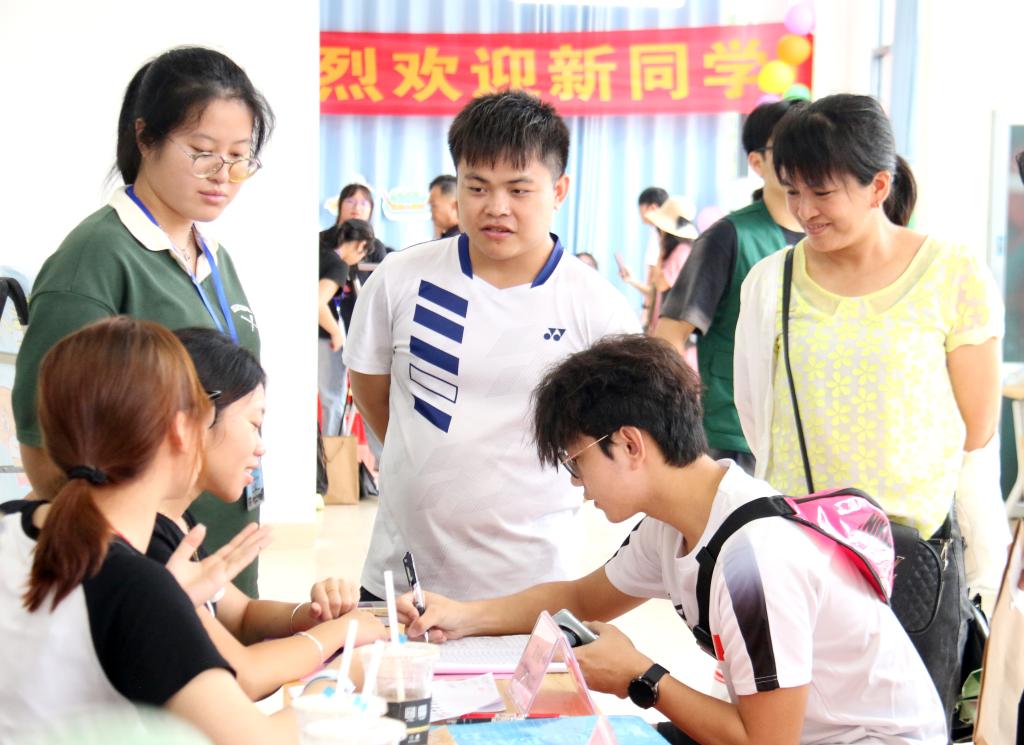 “欢迎你新同学!”“请出示你的录取通知书,在这里签名登记……”他们面带微笑,以饱满的热情帮助新生完成入学手续的办理,耐心解答学习生活上的各种问题,让初来乍到的新生和家长如沐春风,感受到家一般的温暖。