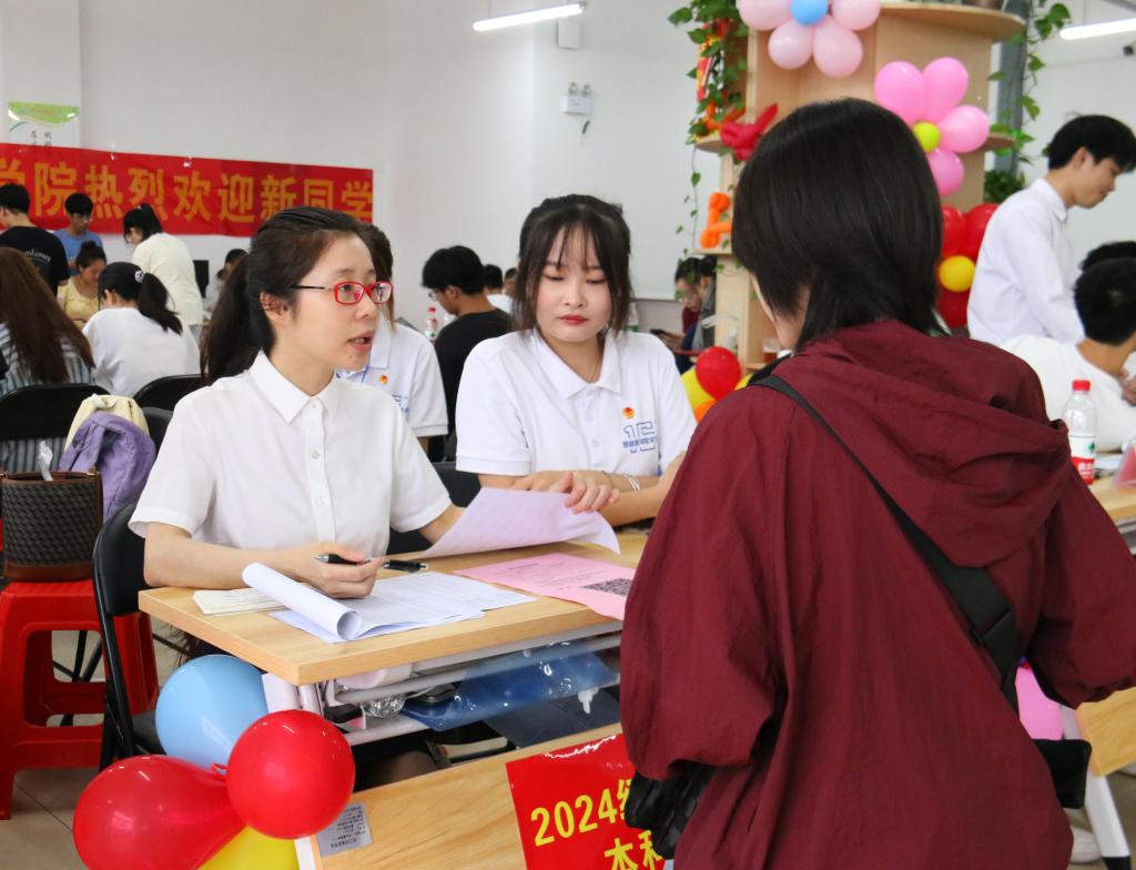 新生报到当天,志愿者们以饱满的热情和温暖的笑容,迎接每一位踏入校园的新面孔,帮助新生搬运行李,引导新生完成报到流程,解答新生疑惑;为落实国家助学资助政策,报到现场设立了“绿色通道”办理点,解决经济困难学生入学的后顾之忧。许多新生及家长表示,走进学校,深切感受到了学校志愿者的热情接待,让我们的心里感到很温暖。在迎新期间,各二级学院主动组织志愿服务团队,一大批党员先锋队、大学生志愿者、高年级学长学姐积极开展志愿服务活动,高效的服务,热情的态度让2024级新生及家长感受到了家一般的温馨与暖心。